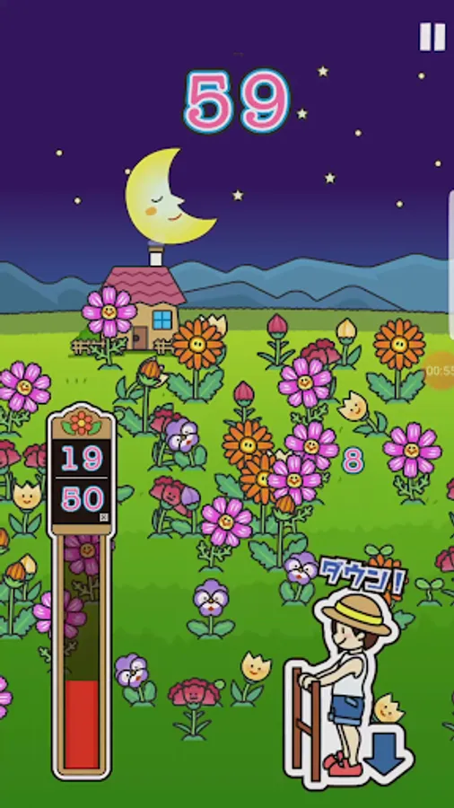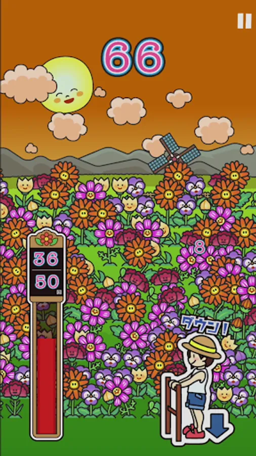 When the game starts, the flowers on the screen grow as the heel is raised and lowered, and the number increases. When raising or lowering the heel, use "once a second" as a guide. When you have reached the target number of times, you are finished.