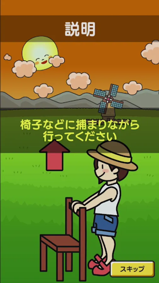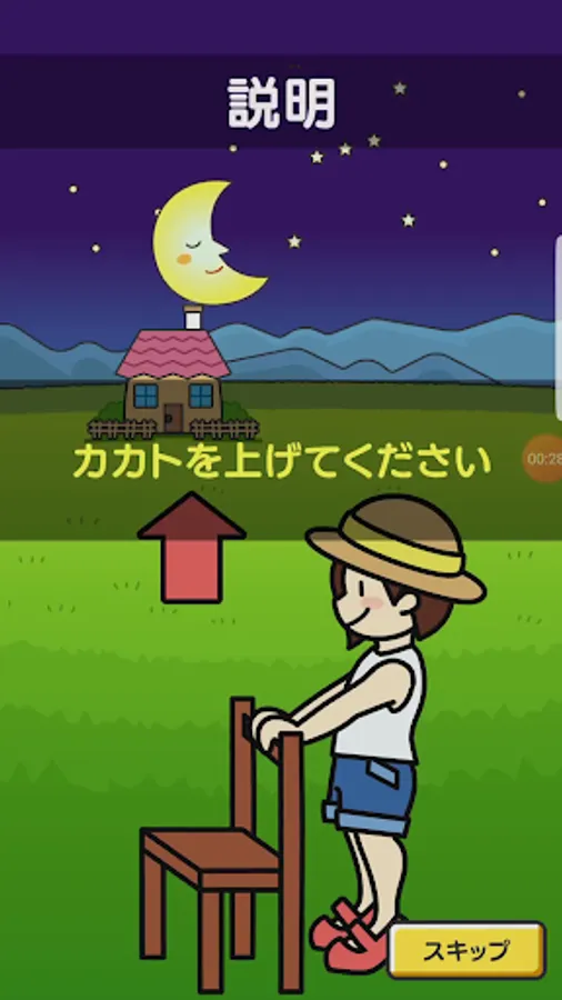 Next, the game explanation begins. If you raise or lower your heel at this stage, the movement of the character on the screen will change as well. Follow the instructions on the screen. Place your hands on a chair or wall, and be careful not to become unstable. You can skip this game description.