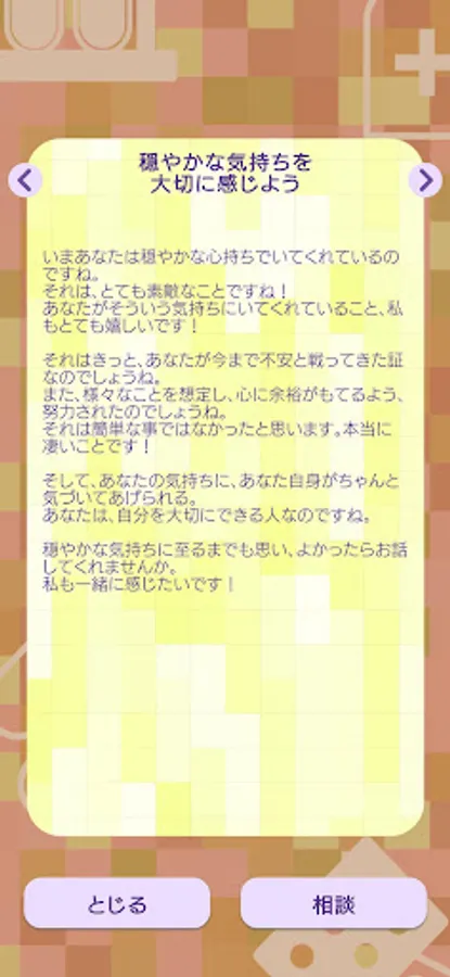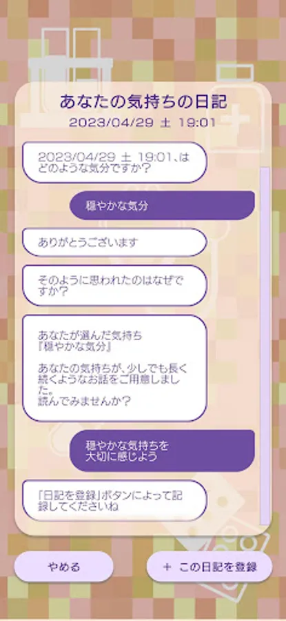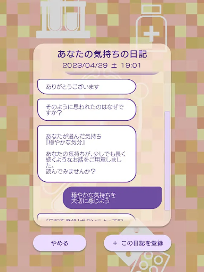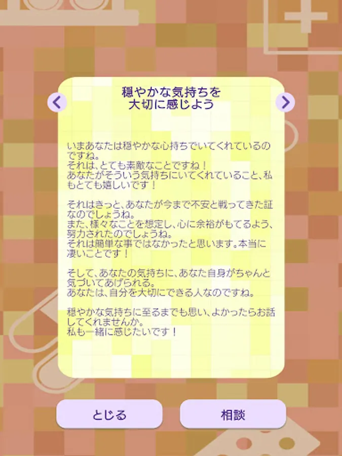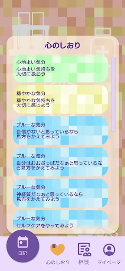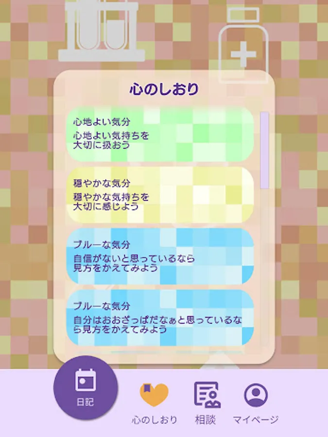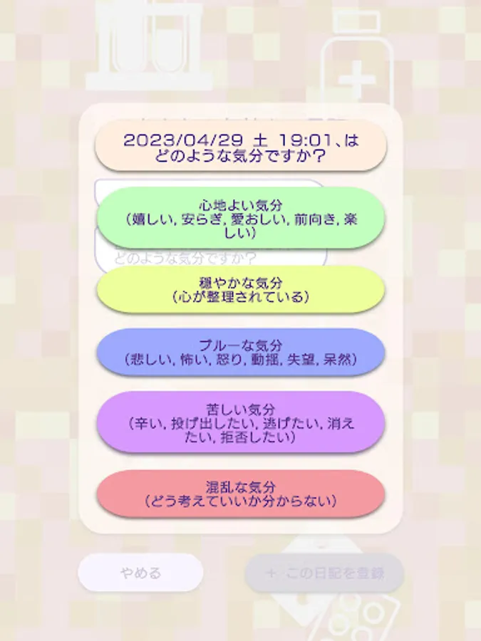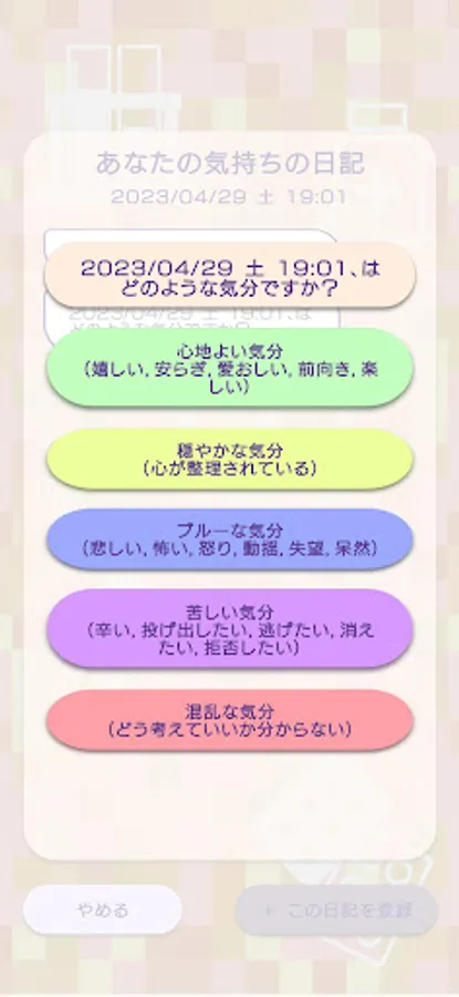 We developed it with the hope that by putting your current feelings into words, you can let go of your feelings and look at your current emotions objectively, and that your mind will become easier.