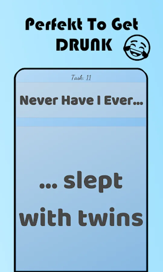 2. This person presses the 'Next' button and reads the task aloud. - e.B. Never Have I Ever had a threesome!