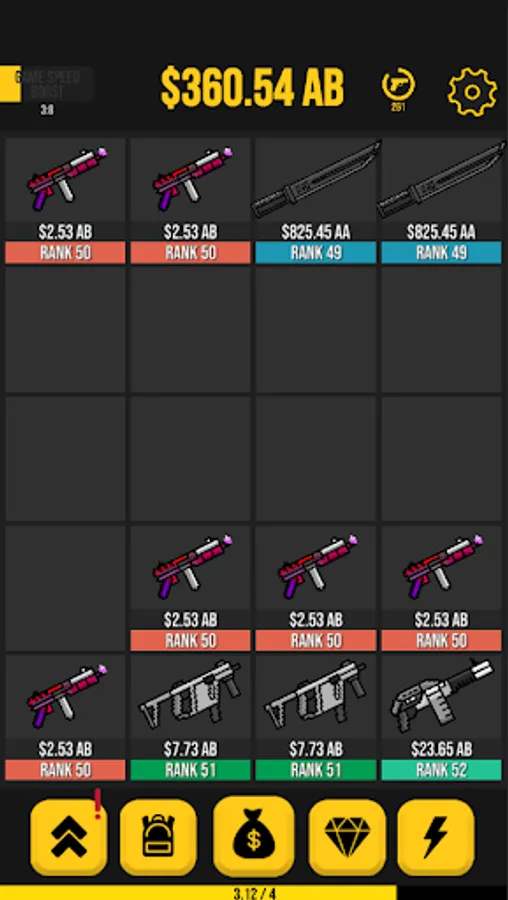 • Drag and drop same Weapon to evolve them into new and more profitable Weapon