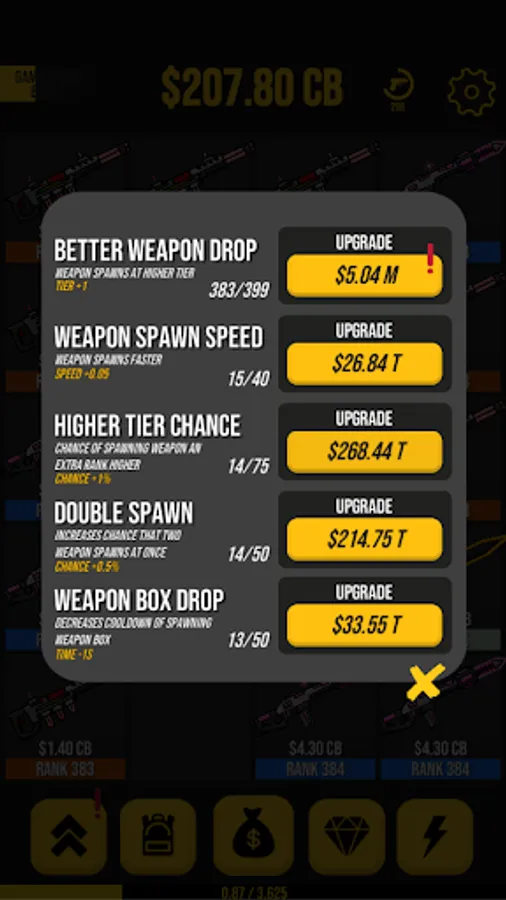 • Level up your Upgrades so you gain gold even faster!