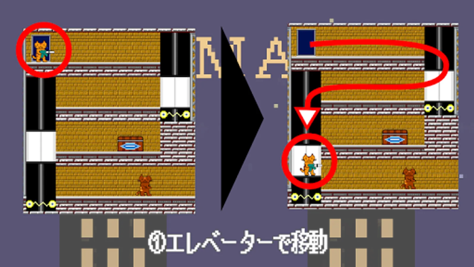 ① Move by elevator