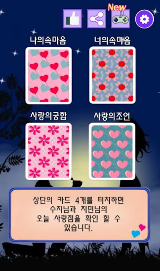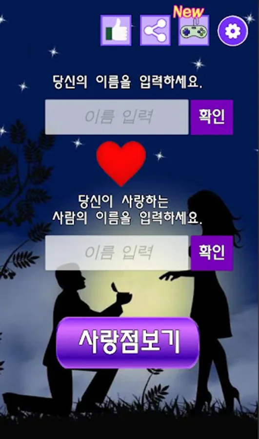 Simply by the name of two people, a magic card will show you the point of love.
