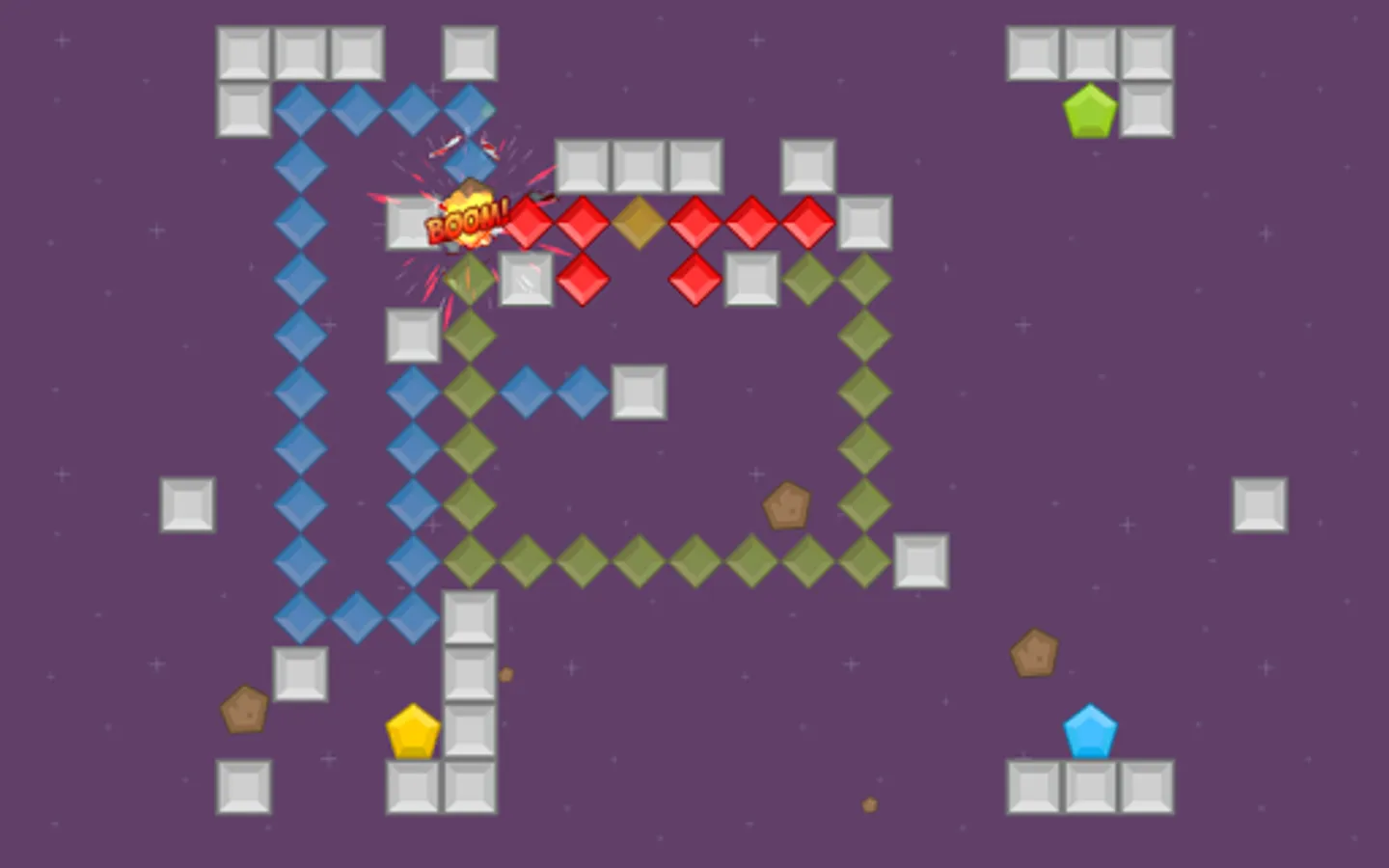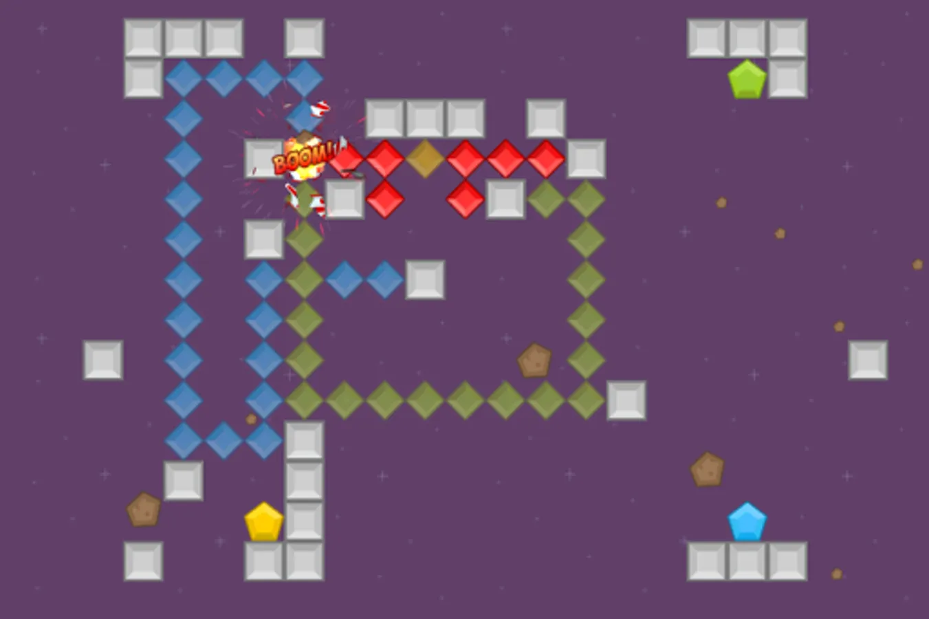 • Watch out for hazards - Time your movements correctly to avoid colliding with hazards and becoming an explosion