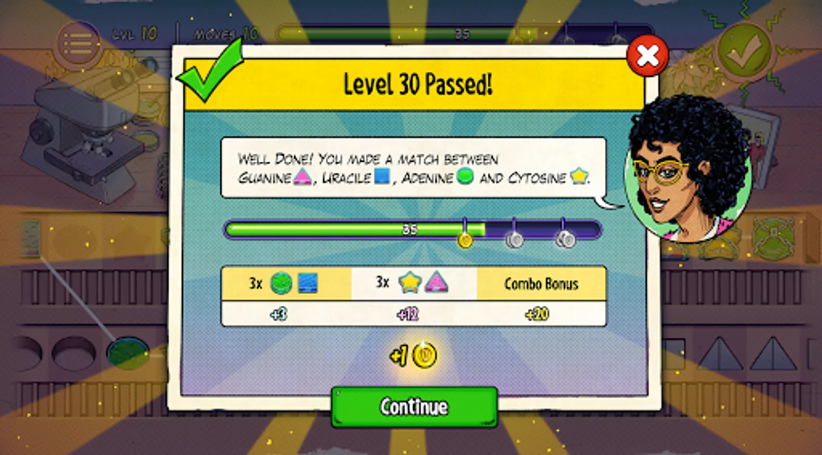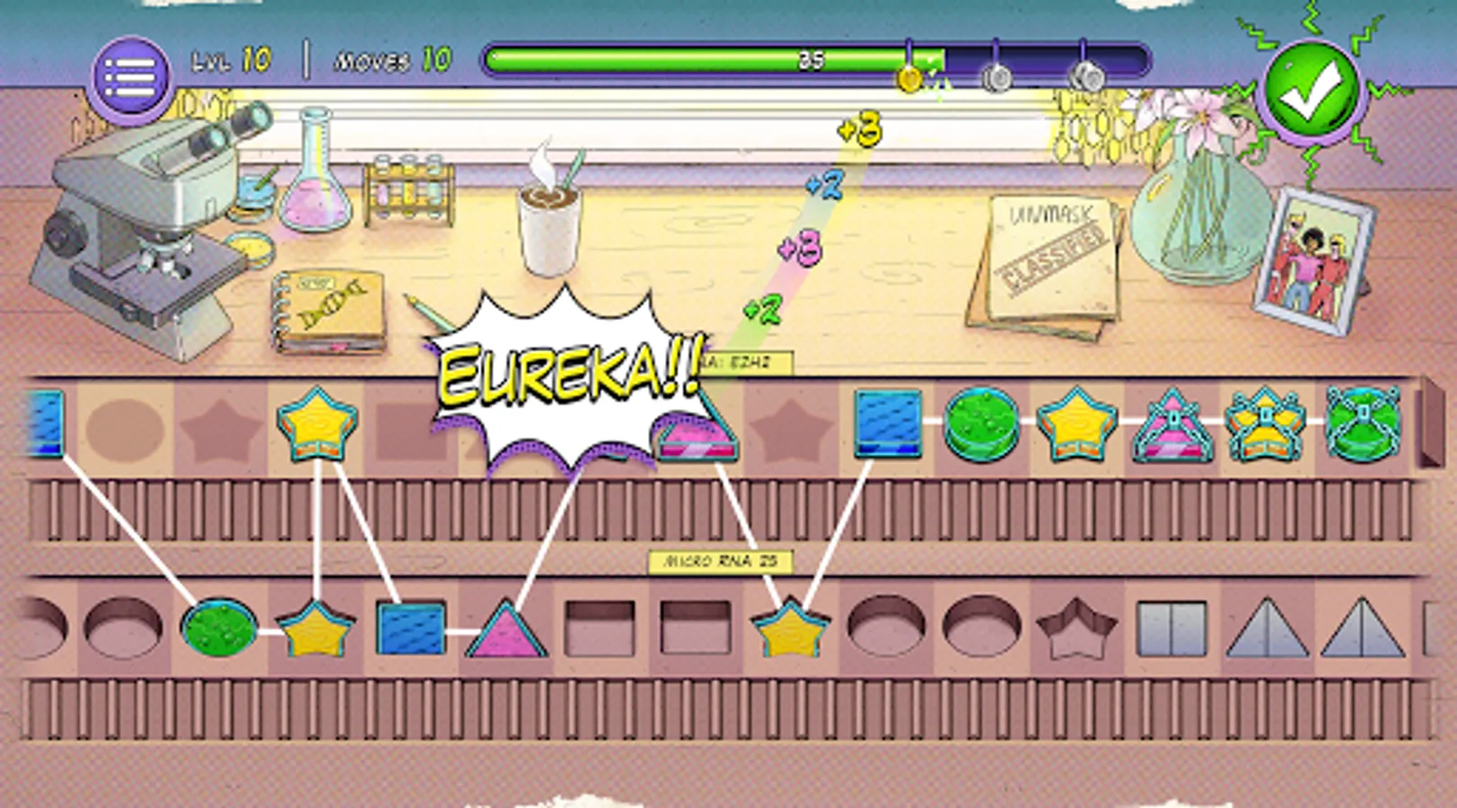 Although the game feels like Candy Crush, you are performing real scientific work for real scientists. Matches found will (in the next version) be send to scientists, as hypotheses for actual experiments.