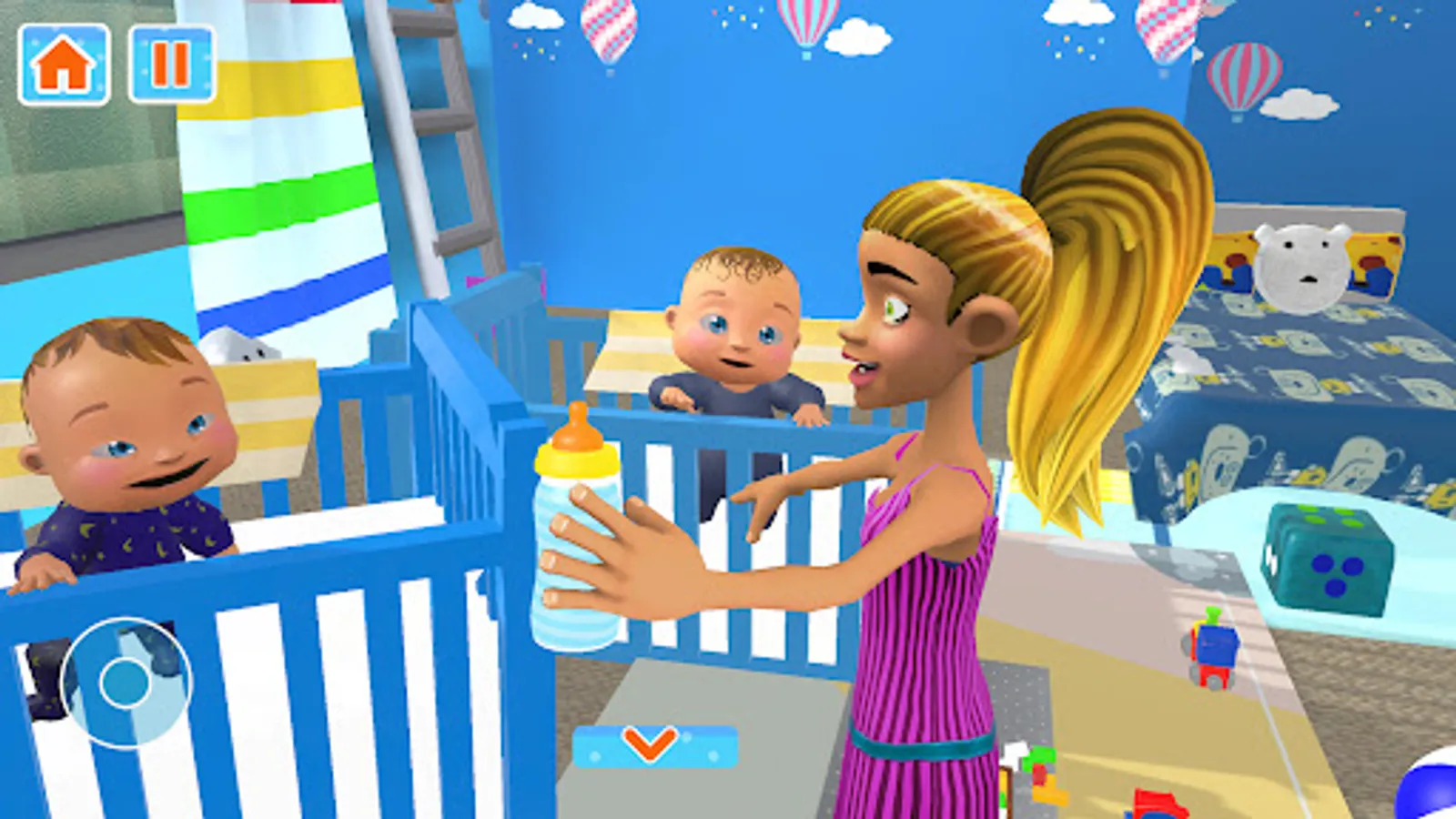 Get ready for this babysitter daycare simulator game. Help the mom as a babysitter ,the newborn twin babies are difficult to handle they both need a lot of attention so be ready for being a super babysitter.