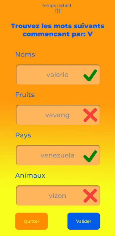Back to childhood. Find a name, a fruit, a country and an animal starting with a random letter. One point is awarded for each correct answer.