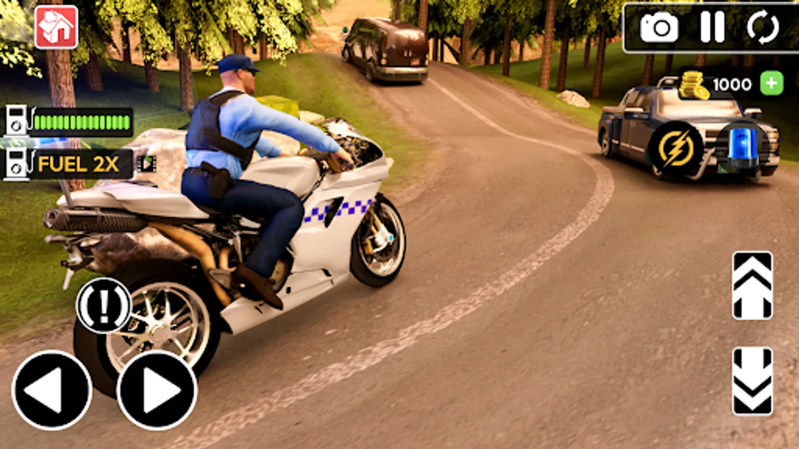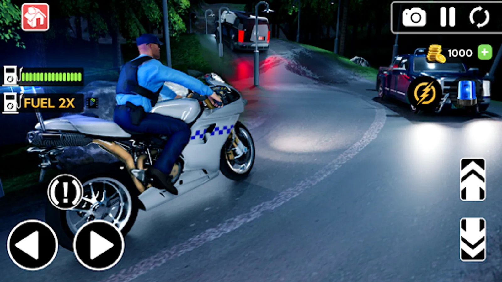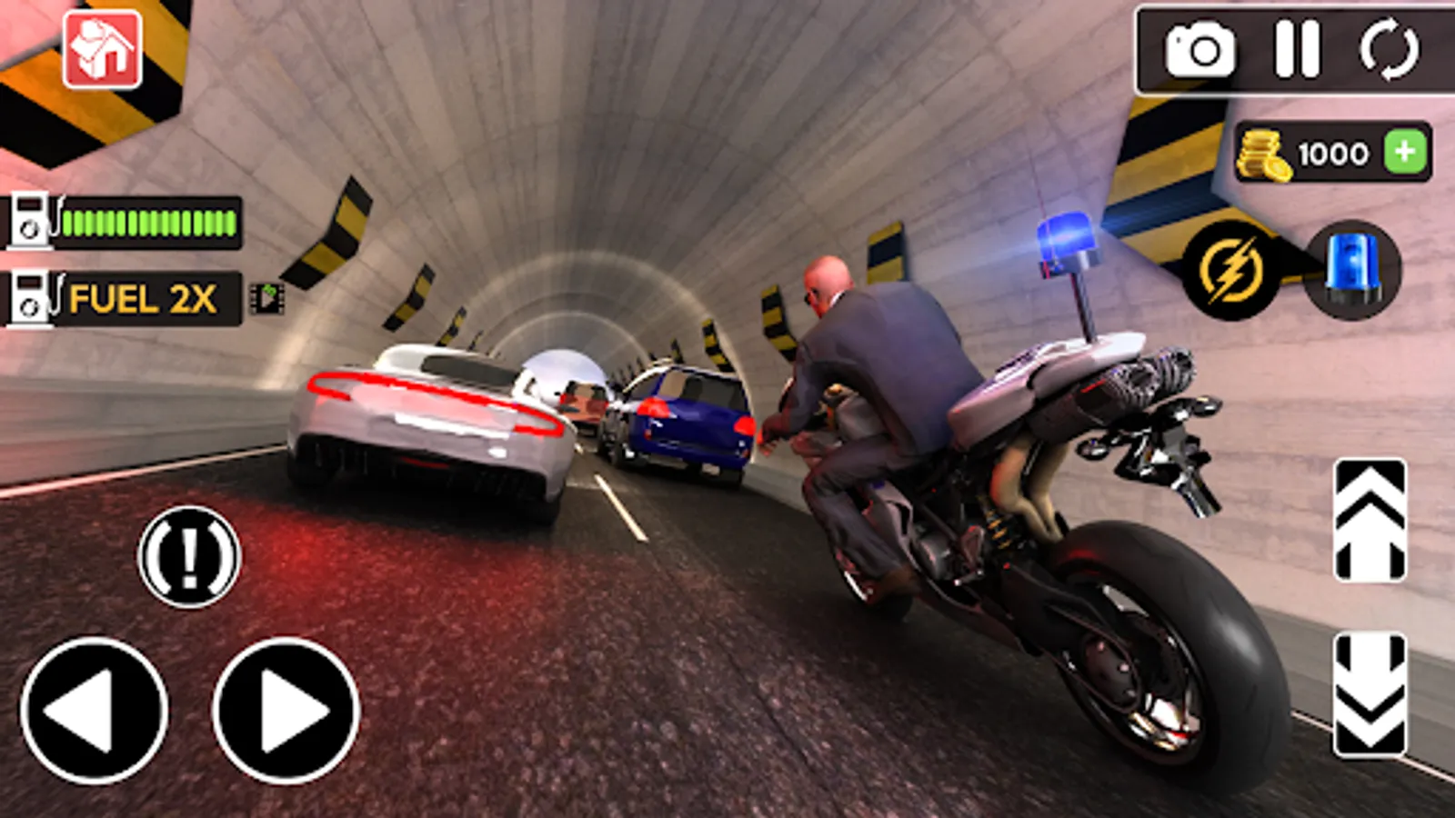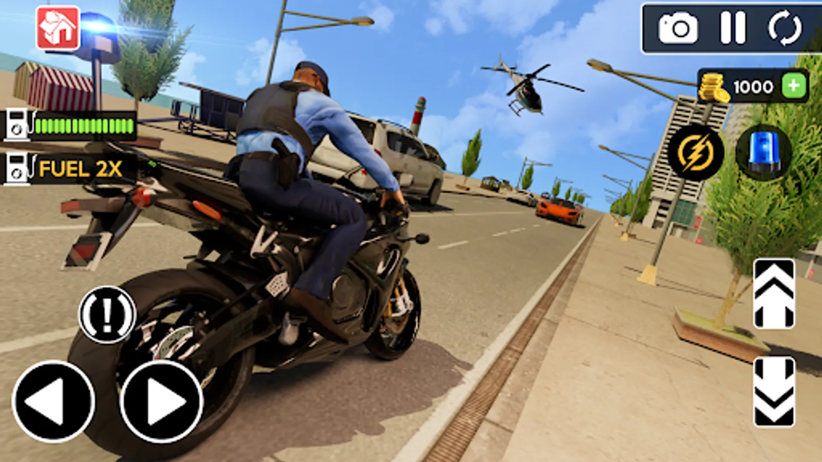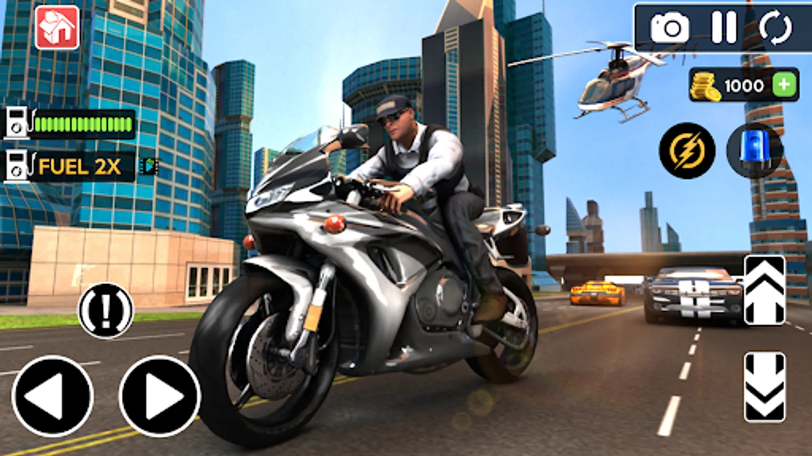 Race through traffic on streets, up ramps and into air to beat the time. Speed up before the fuel runs out. Accept the extreme bike driving challenge and become the police motorbike driver that nobody can catch.