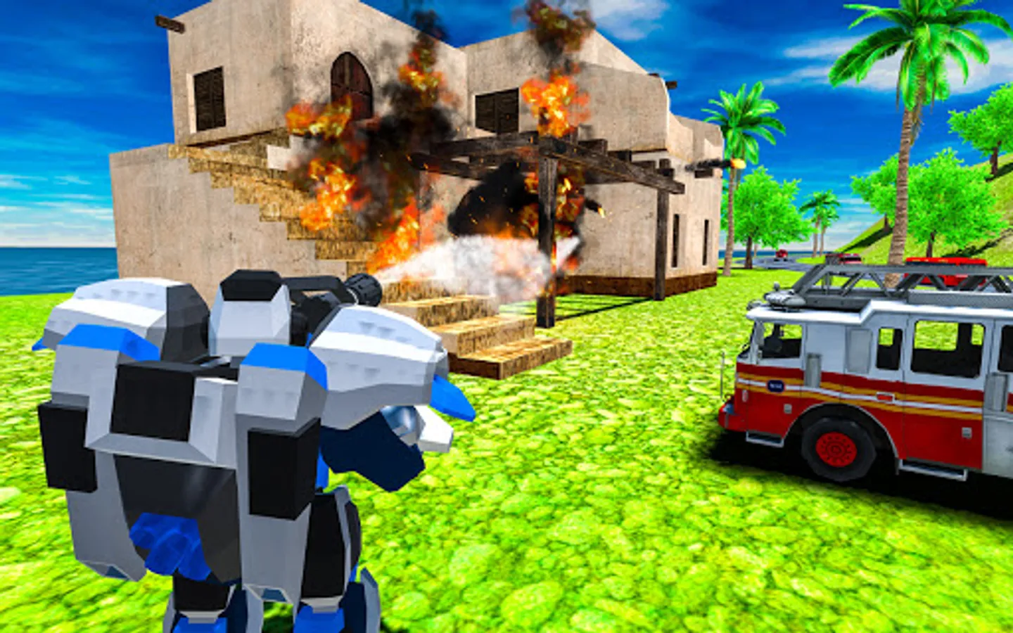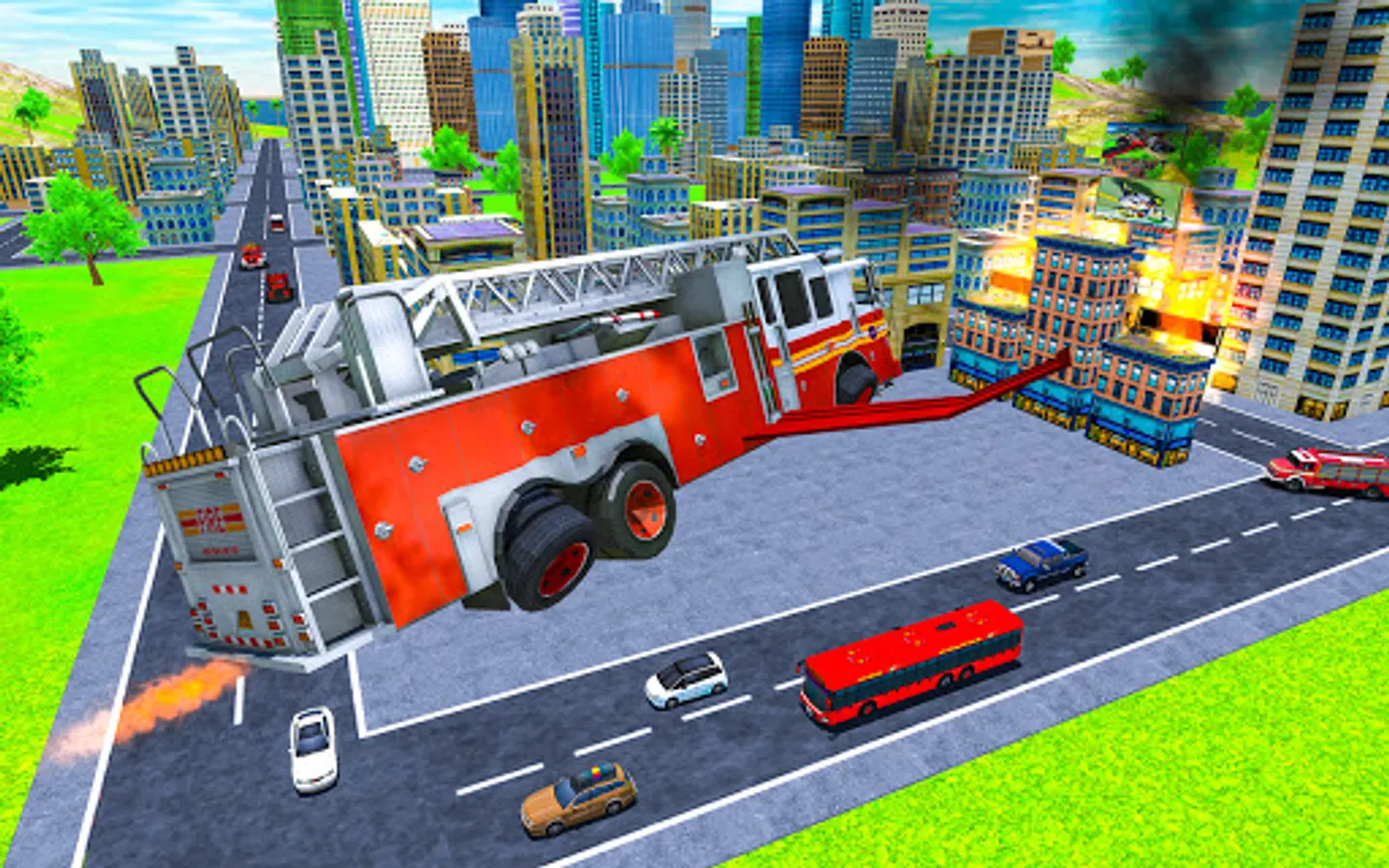 Download Real Flying Fire Truck Robot: Rescue Simulator by GAME TAP to become a fireman in truck simulator and to rescue people from fire.