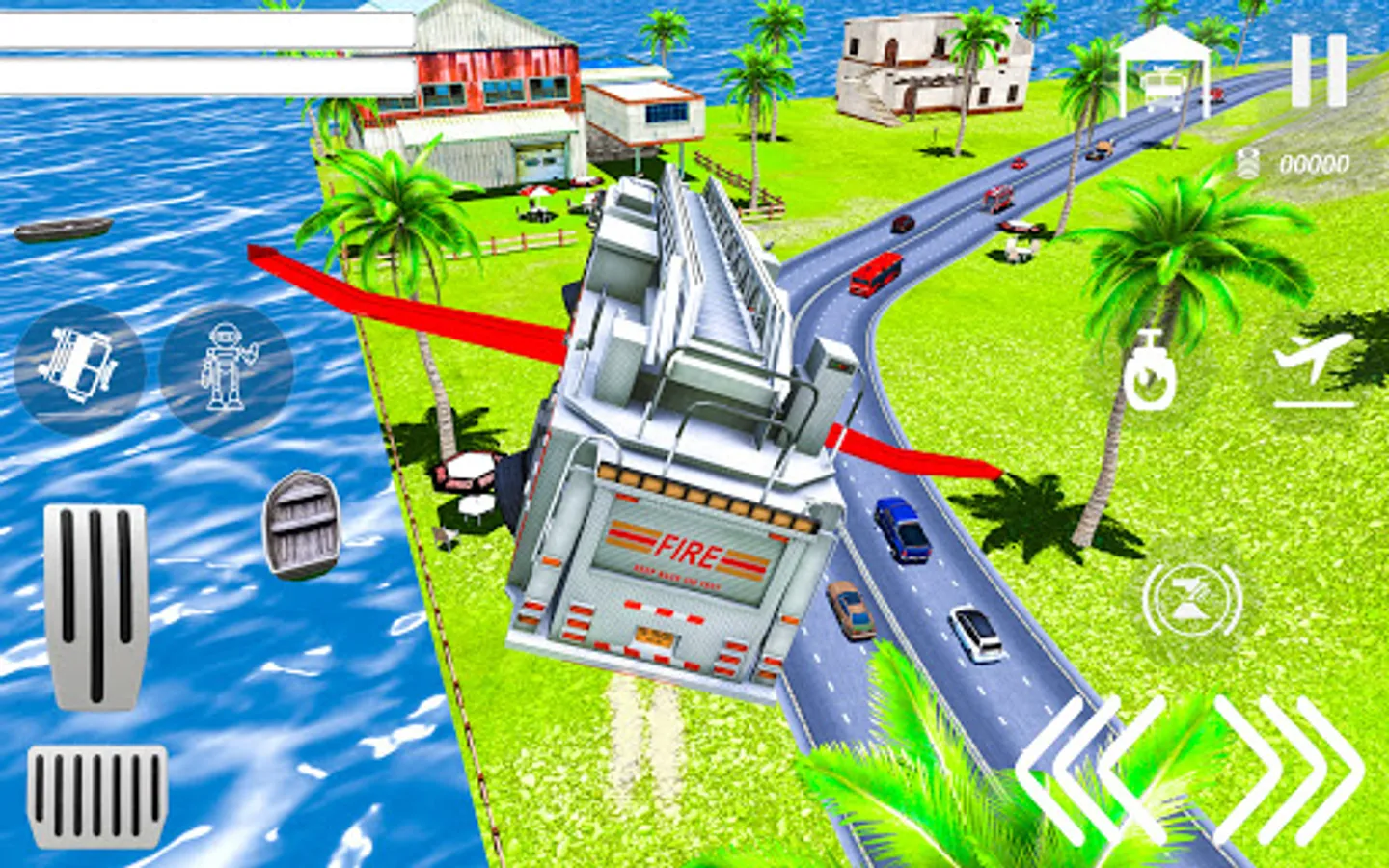Fan of flying truck driving simulator games? Then get ready to become real rescue firefighter in firefighting games. With HD graphics in flying fire truck game this truck driving simulator game has best controls for flying the fire fighter robot.