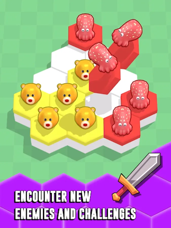 Hex Takeover has simple game rules, yet the game can be quite a bit challenging! With different levels and varying difficulties, there are tons of different strategies to explore.