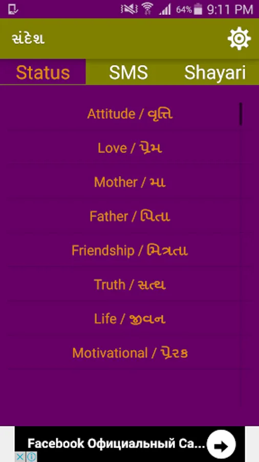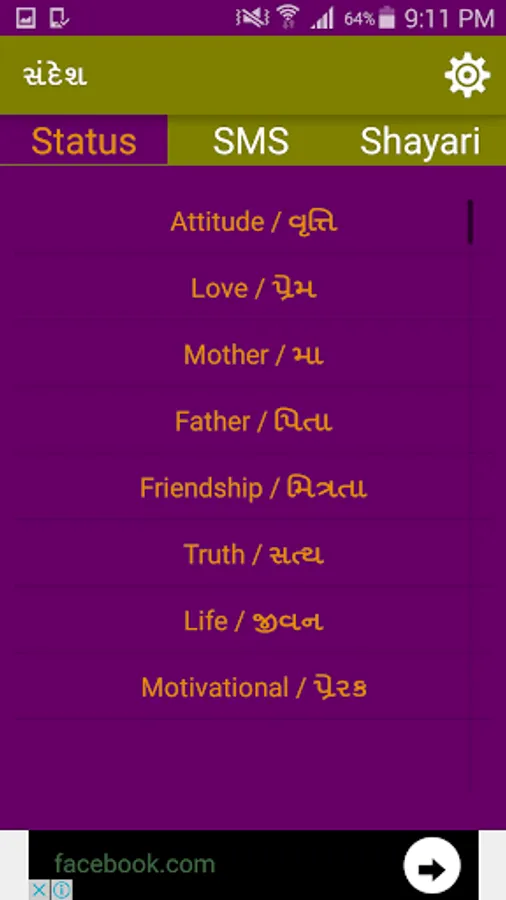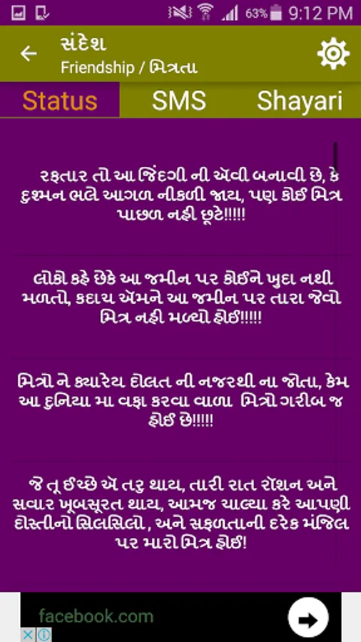 સંદેશ :- Completely offline & FREE collection of Gufarati shayari sms and status with Message Editor .