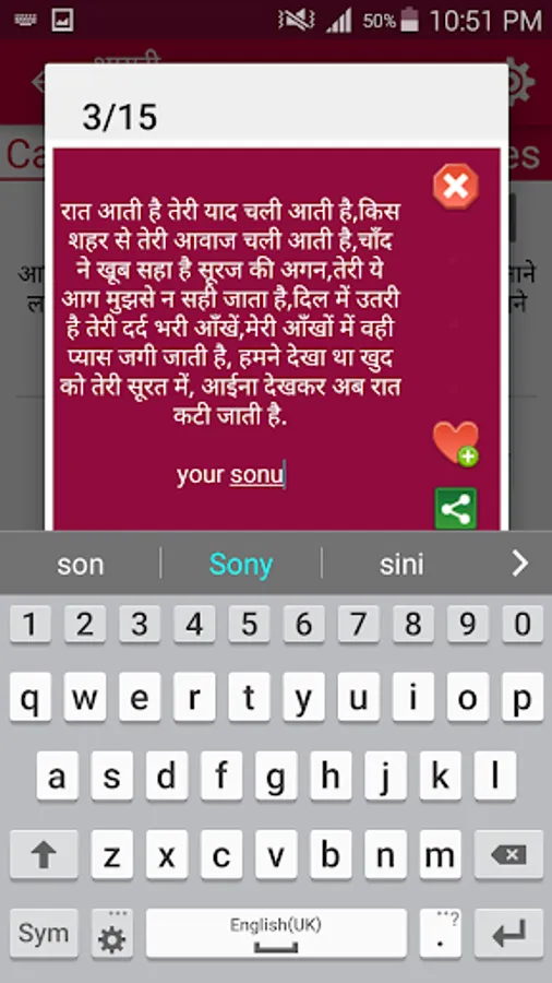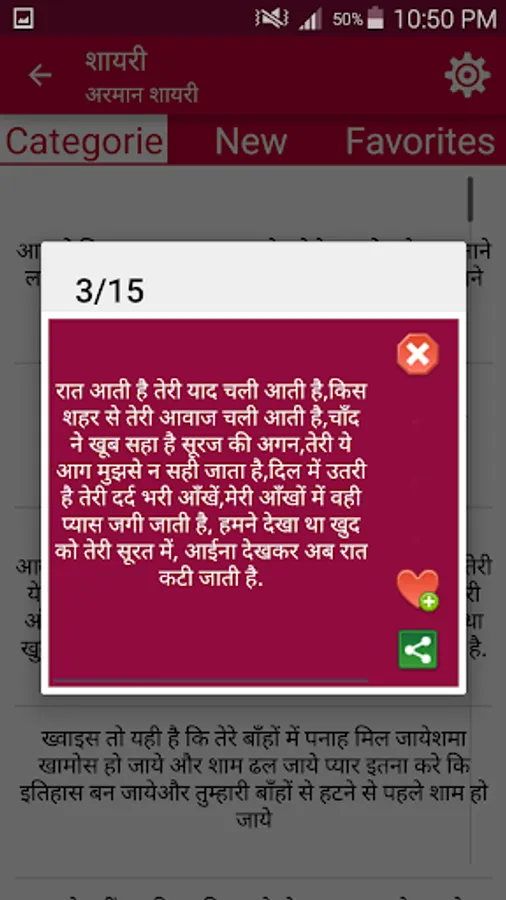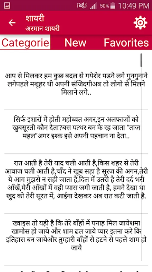 16) Shayaris across a wide range of categories like Love, Friendship, Dard, Funny, Sad.