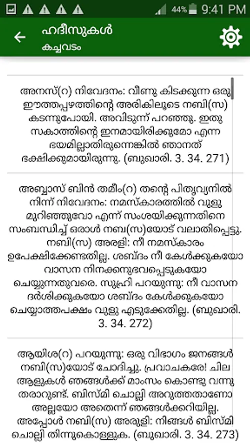 ഇമാം ബുഖാരി, ഇമാം മുസ്ലിം, ഇമാം അബൂദാവൂദ്, തിര്മിദി, ഇബ്നുമാജ, നസാഈ മുതലായ ഹദീസ് പണ്ഡിതര് റിപ്പോര്ട്ട് ചെയ്ത മൂവായിരത്തോളം സ്വഹീഹായ ഹദീസുകള്...വിഷയാടിസ്ഥാനത്തില്.
