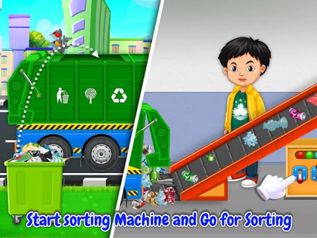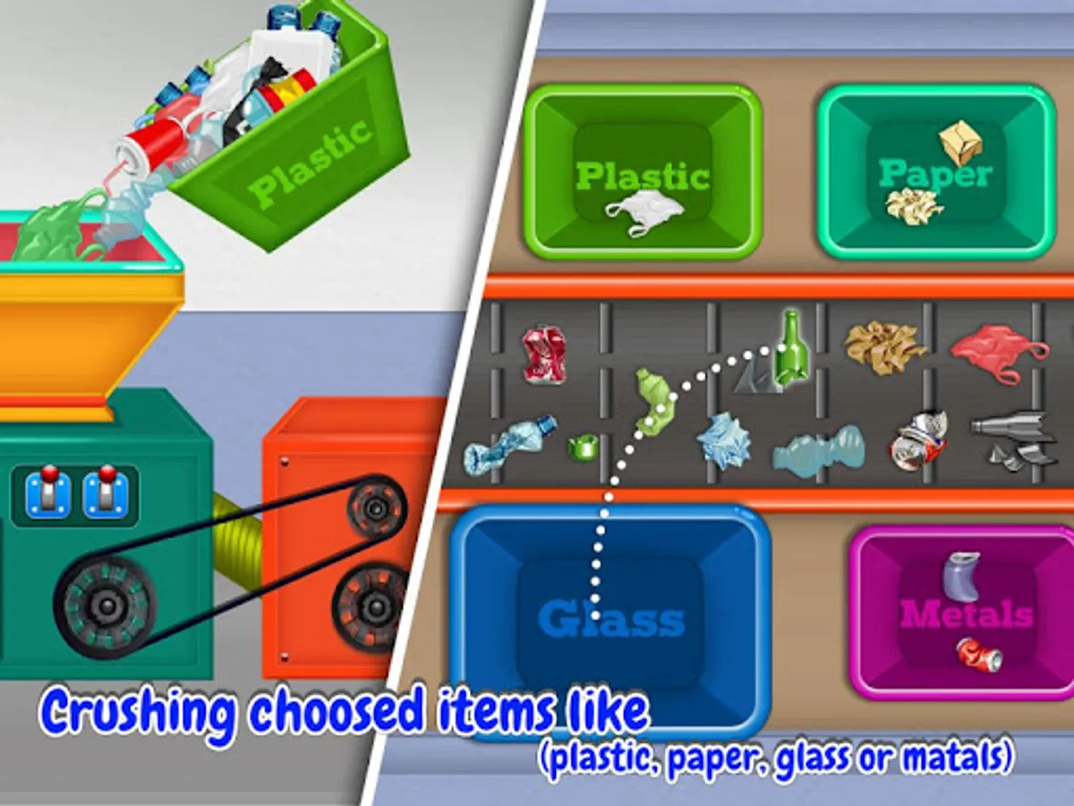 To keep our streets and country clean using this garbage & recycling game, it will help to reuse your garbage to make glass and toys. collect all garbage from street and go to nearby garbage recycle factory, separate all garbage like plastic, paper, glass and metal and make the recycle accordingly, make the glass from glass garbage and male the toys from plastic garbage.