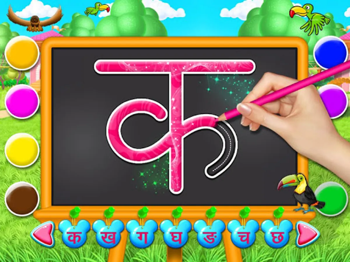 Hindi Alphabet provides a step-by-step guided direction for writing each hindi letter. This game is perfect choice for learning and writing Hindi alphabets.