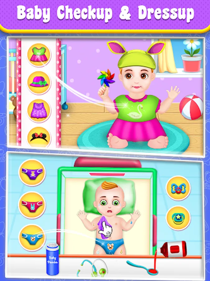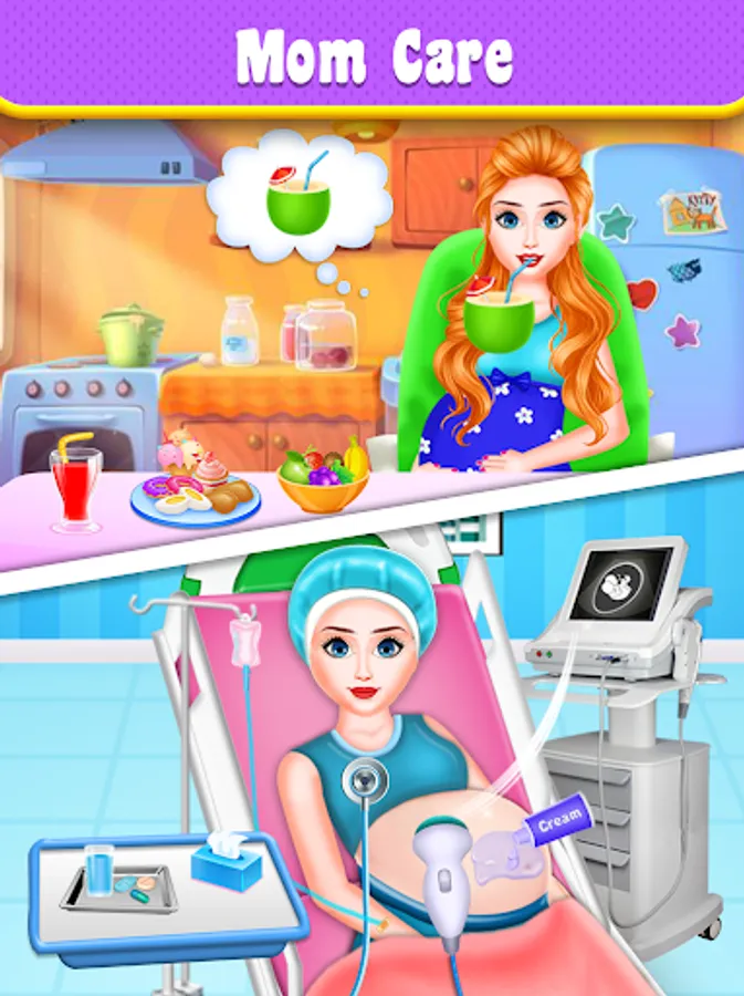 Welcome to a pregnant mommy and babysitter games. Let's ready to get unlimited fun like feeding very healthy breakfast, meal & fruits, regular checkup of mom & newborn baby in hospital and how to take care of their twins at home in this pregnant mom & new born babysitter game.