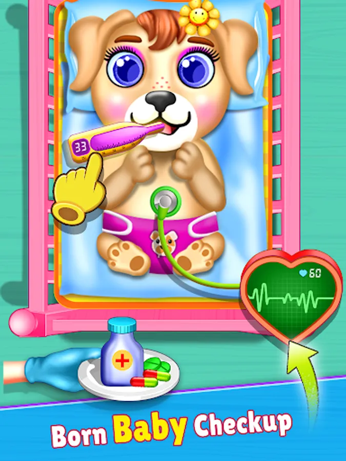 "Puppy Mom & Newborn Pet Care" is a fun and engaging mobile game that allows players to take on the role of a caring puppy mom. In the game, players must take care of their newborn puppies by feeding them, bathing them, playing with them, and putting them to sleep.