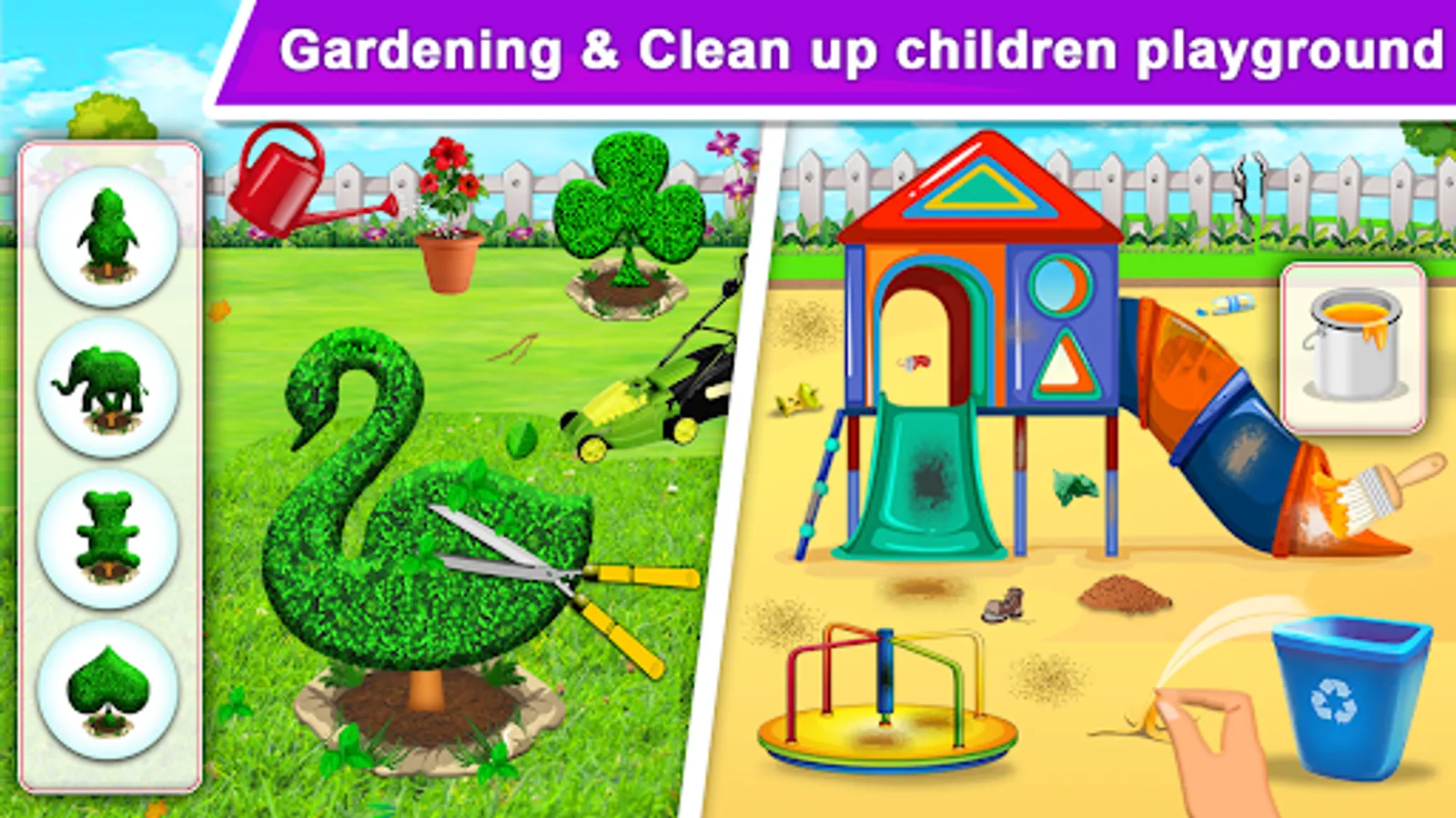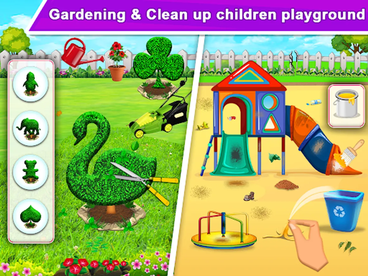 Garden is so dirty you need to taking care of garden. Pick up all the trashes, clean dirty lane, remove spider web, clean bench and much more. Use the proper tools and clean up the dirty garden to make it look beautiful as before.