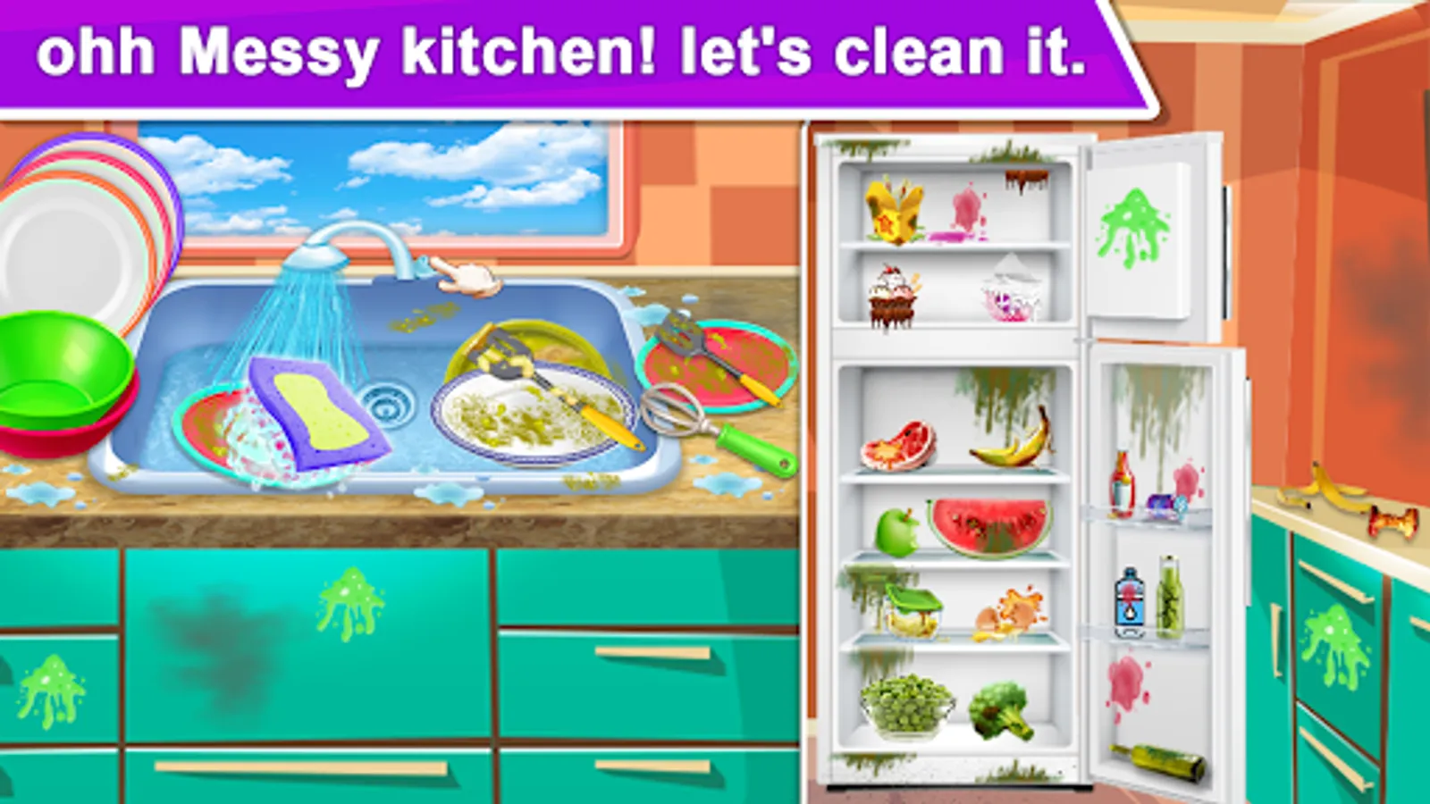 · Wash the dishes in the kitchen, clean up the fridge!