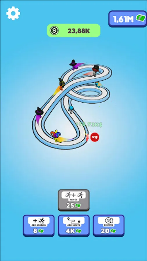 Let your minion runners do the work for you by running past money gathering points. Are they too slow for you? Tap repeatedly to increase their speed! You will be the richest person in the world in no time!