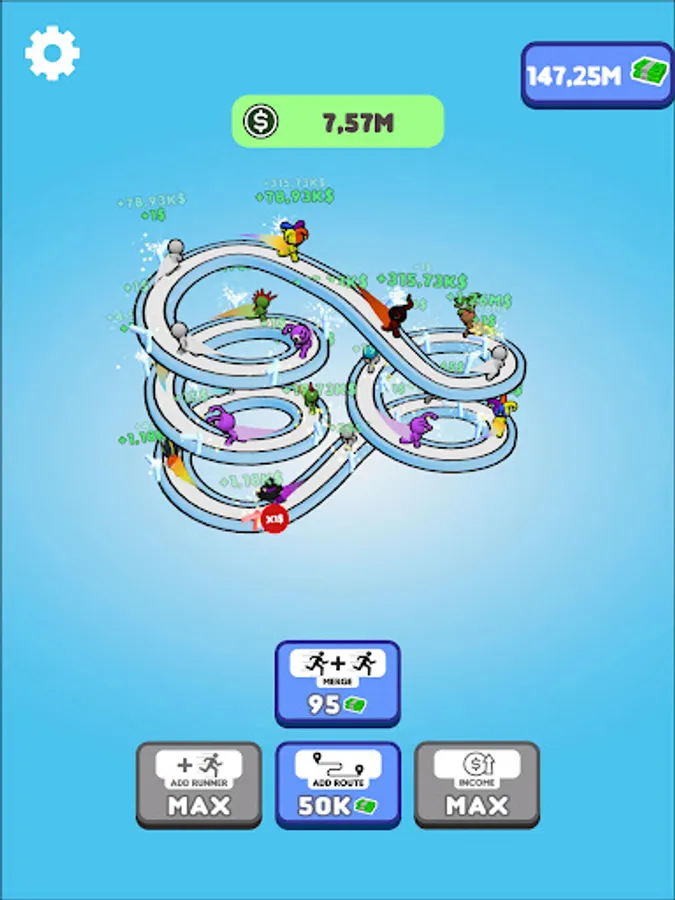 Your life as a merger is simple. Buy new runners, merge them to higher level runners, gain more money, buy longer and higher roads and repeat!