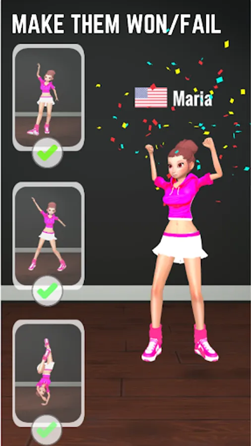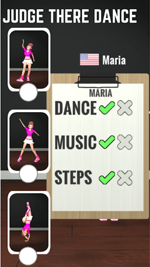 Match the Dance of the Player Give them Score and Ratings. Make them Win/Fail. Let's see how you are going to judge them and make them dancer No.1 or dancer No.0.