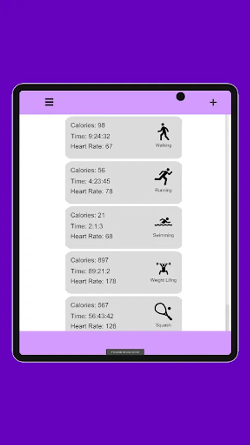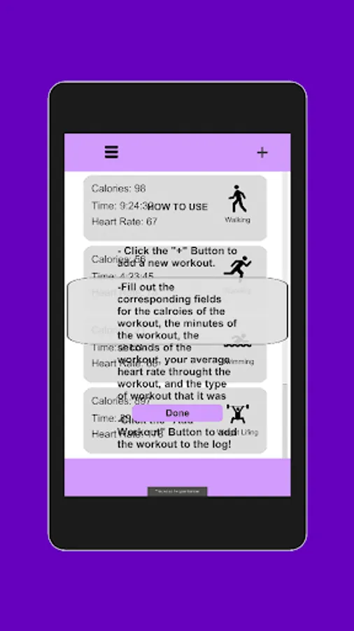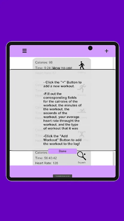 Fitness Tracker: A Fitness Log is an easy to use, visually pleasing tool to track fitness details. You can simply just add a workout, input the calories, minutes, seconds, milliseconds, heart rate, and type of workout, and it will store it in a convenient log for you! This relatively simple to use app fits the needs of the casual fitness goer who just wants a place to store workouts.