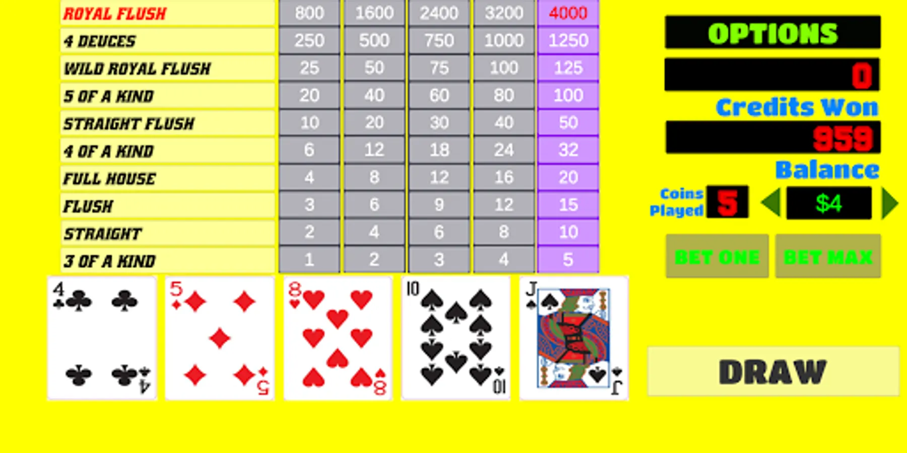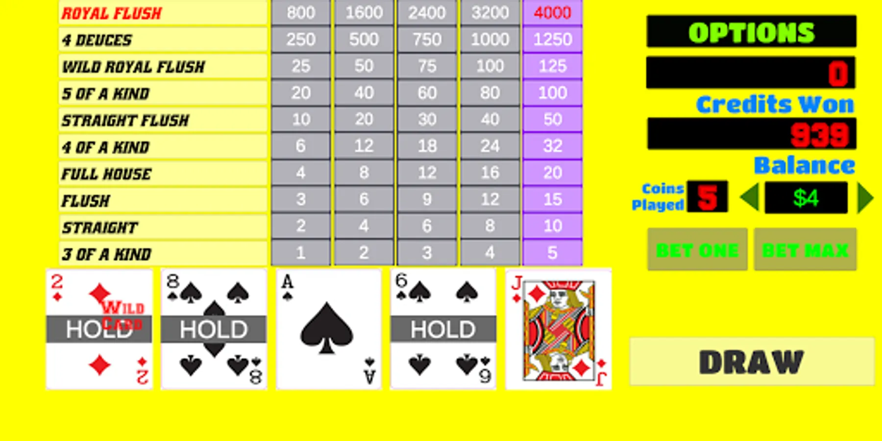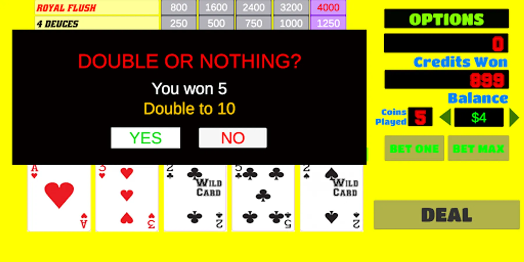 - This video poker free app has option to double up your winnings.