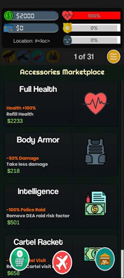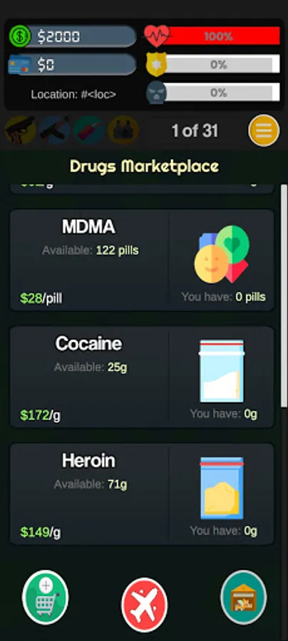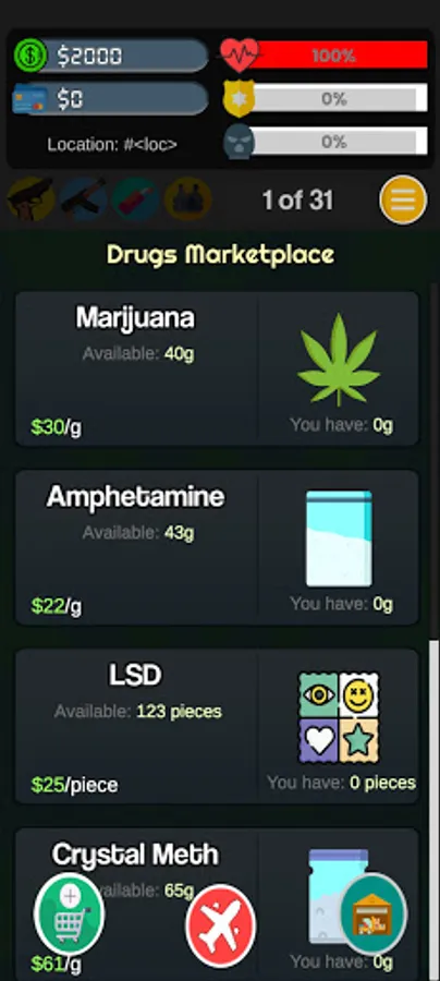 Police is real here. Keep an eye on your Exposure meter. Every purchase, sale, transport, illegal investment and other illegal activity raises Exposure level by certain percentage.