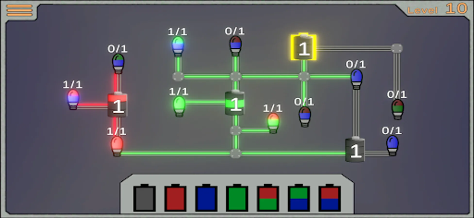 Are you a bright one? Prove it! Test your skills by lighting up bulbs of different colors using various batteries. Each puzzle gets progressively more difficult and adds new mechanics. Can you beat all 35 levels?