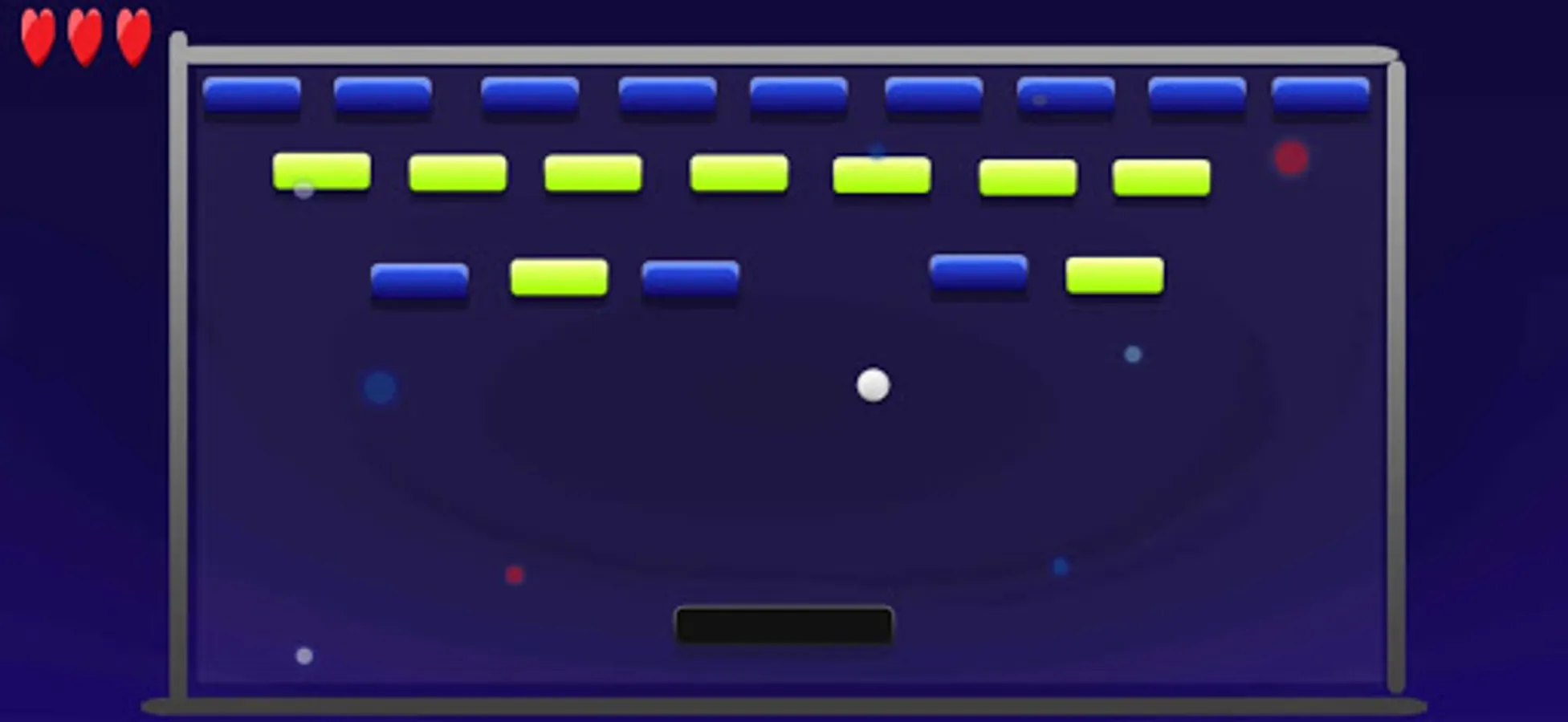 En la parte inferior de la pantalla una rayita simula una raqueta de front-tenis que el jugador puede desplazar de izquierda a derecha. En la parte superior se situa una banda conformada por rectángulos que simulan ser ladrillos. Una pelotita desciende de la nada y el jugador debe golpearla con la raqueta, entonces la pelota asciende hasta pegar en el muro, los ladrillos tocados por la pelota desaparecen. La pelota vuelve a descender y así sucesivamente. El objetivo del juego es terminar con la pared de ladrillos.