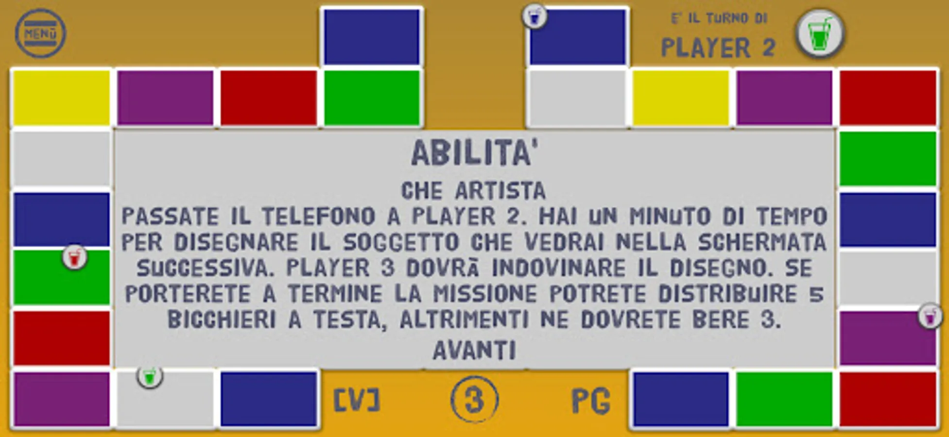 It is a classic game of the goose, with the difference that each box has its own particularities and also you drink here.