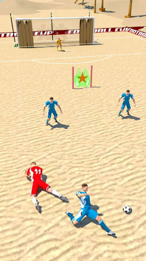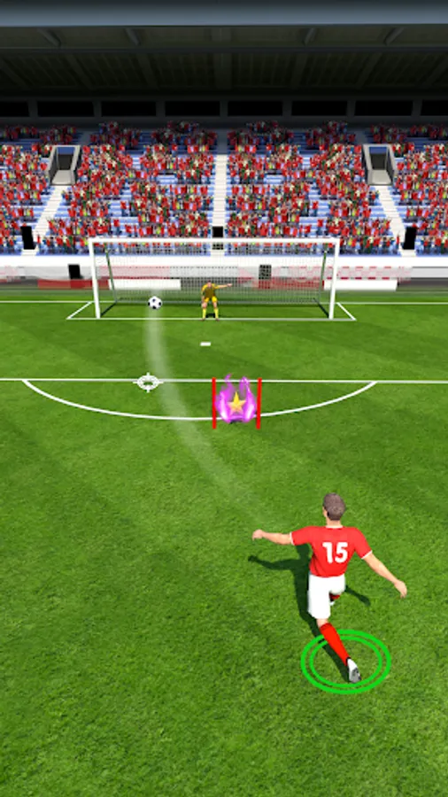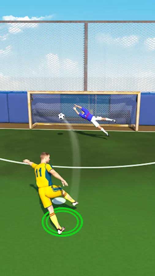 -> Make your way towards the goal and strike past the goalkeeper to complete the level.