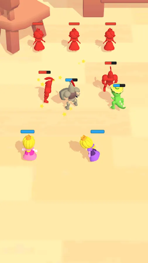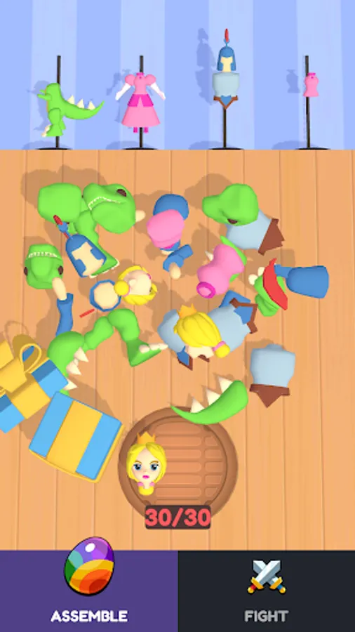 Build up your own toy squad from pieces. Merge toys to get most powerful creatures and defeat enemy.