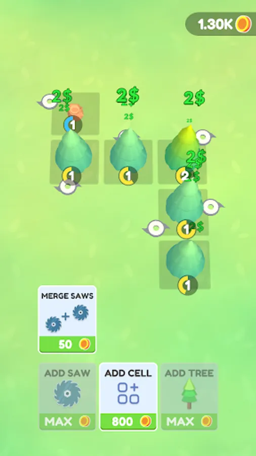 Merge your saws to create more powerful tools, automate your cutting process, and watch as your forest grows. With each tree felled, you'll earn in-game currency, allowing you to purchase upgrades and enhance your woodcutting operation.