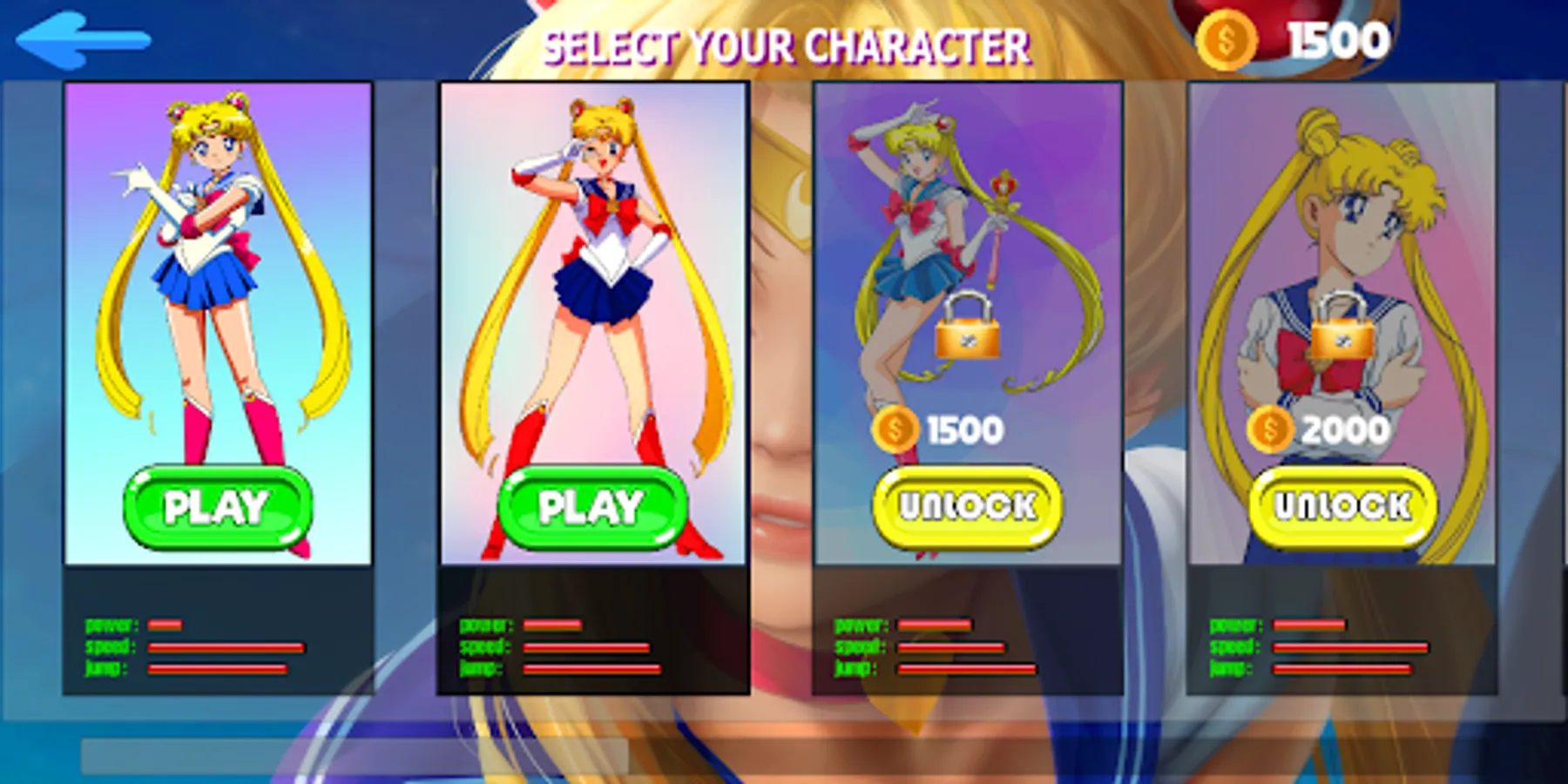 Choose from multiple skins of Sailor Moon each with their unique appearance.