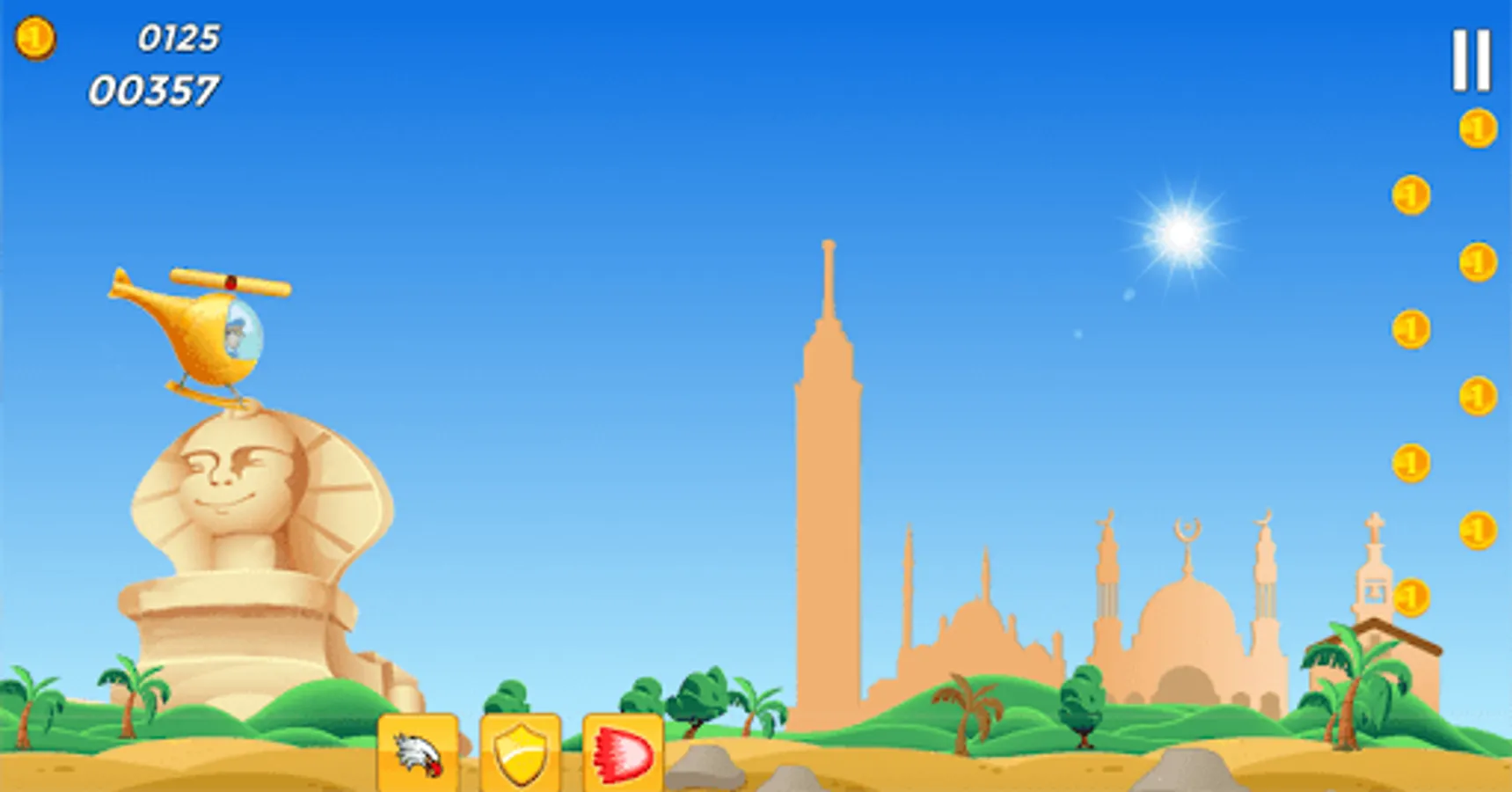 El Sisi will lead you in the fantastic world of egypt. Help Super Sisi into reach the farthest distance possible and achieve the highest score. you'll have to fly over dangerous obstacles. Run through Bombs and explosives. grab Power-ups and buy it. have fun and Help Super Sisi to save Egypt!