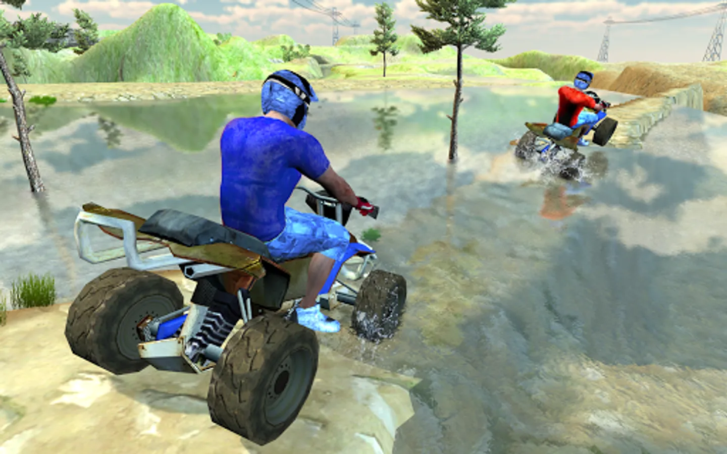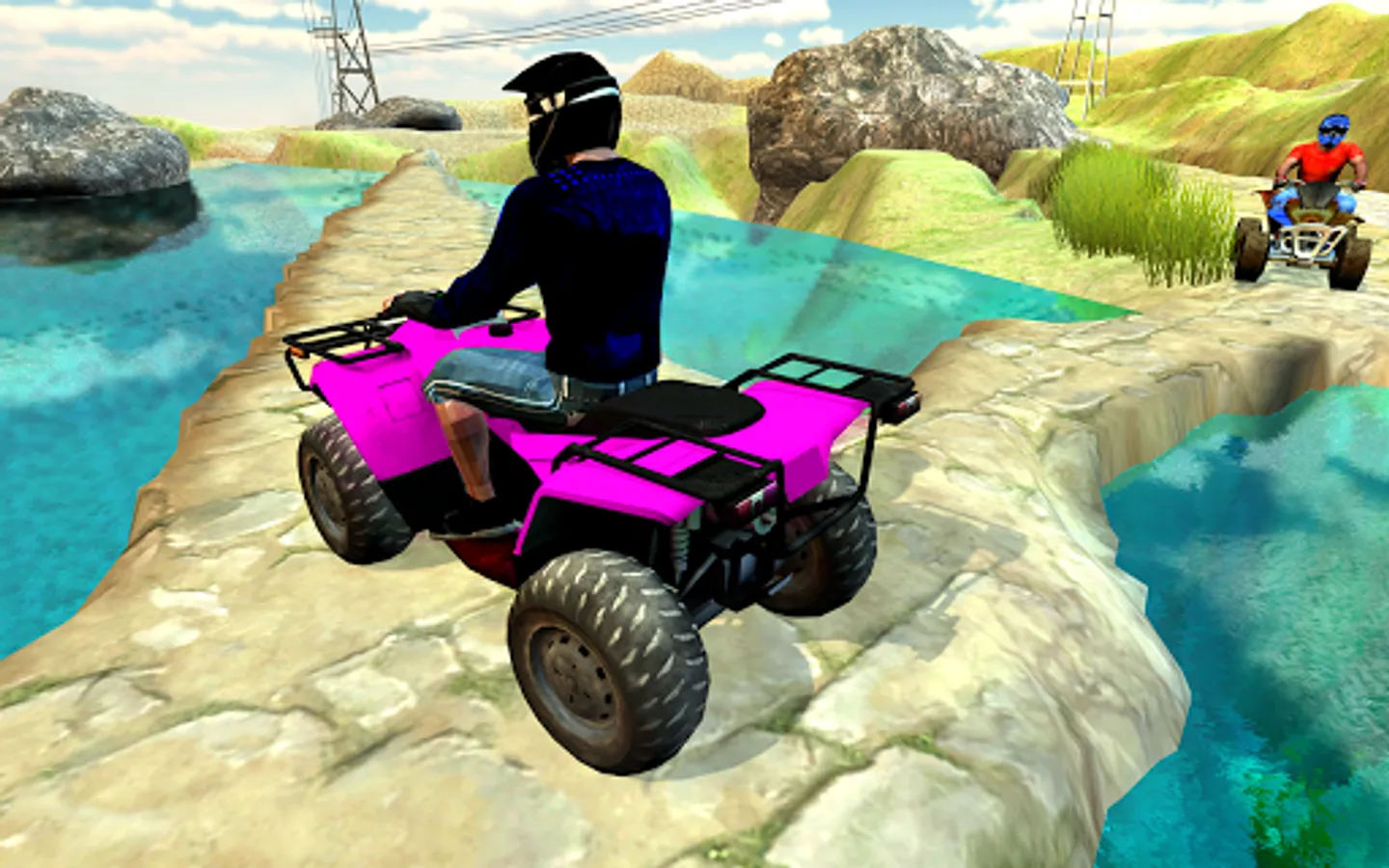 ATV Quad Bike off road mania offering realistic ATV Stunts to perform on sand muddy narrow roads.