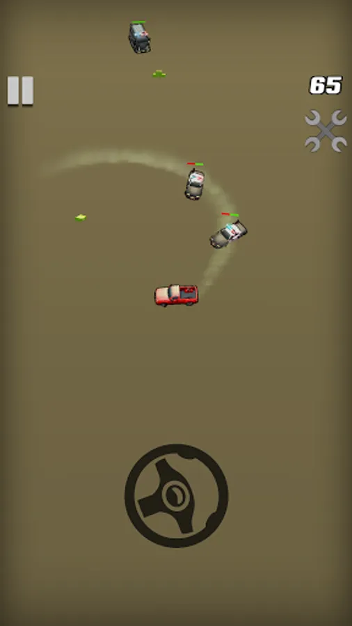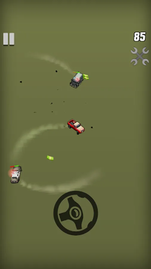 Trick the cop cars chasing you to destroy the objectives. Make them hit the objectives. Keep your eye on both the chasing little drifter and the bosses. Every objective moves in their own rhythm and you have to find your own rhythm to survive around that objective and destroy it. Now every level contains different objectives / bosses. You have to complete the objectives by destroying them. These bosses are very strong and dangerous. Some are fast and some are slow in their own way. Do not get busted by them and attack on them from a safe distance