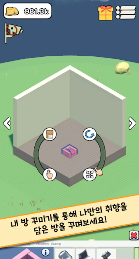 ๐ฆ Room expansion: You can increase the number of rooms by using gold. By increasing the number of rooms, you can decorate the bathroom, kitchen, and bedroom separately.