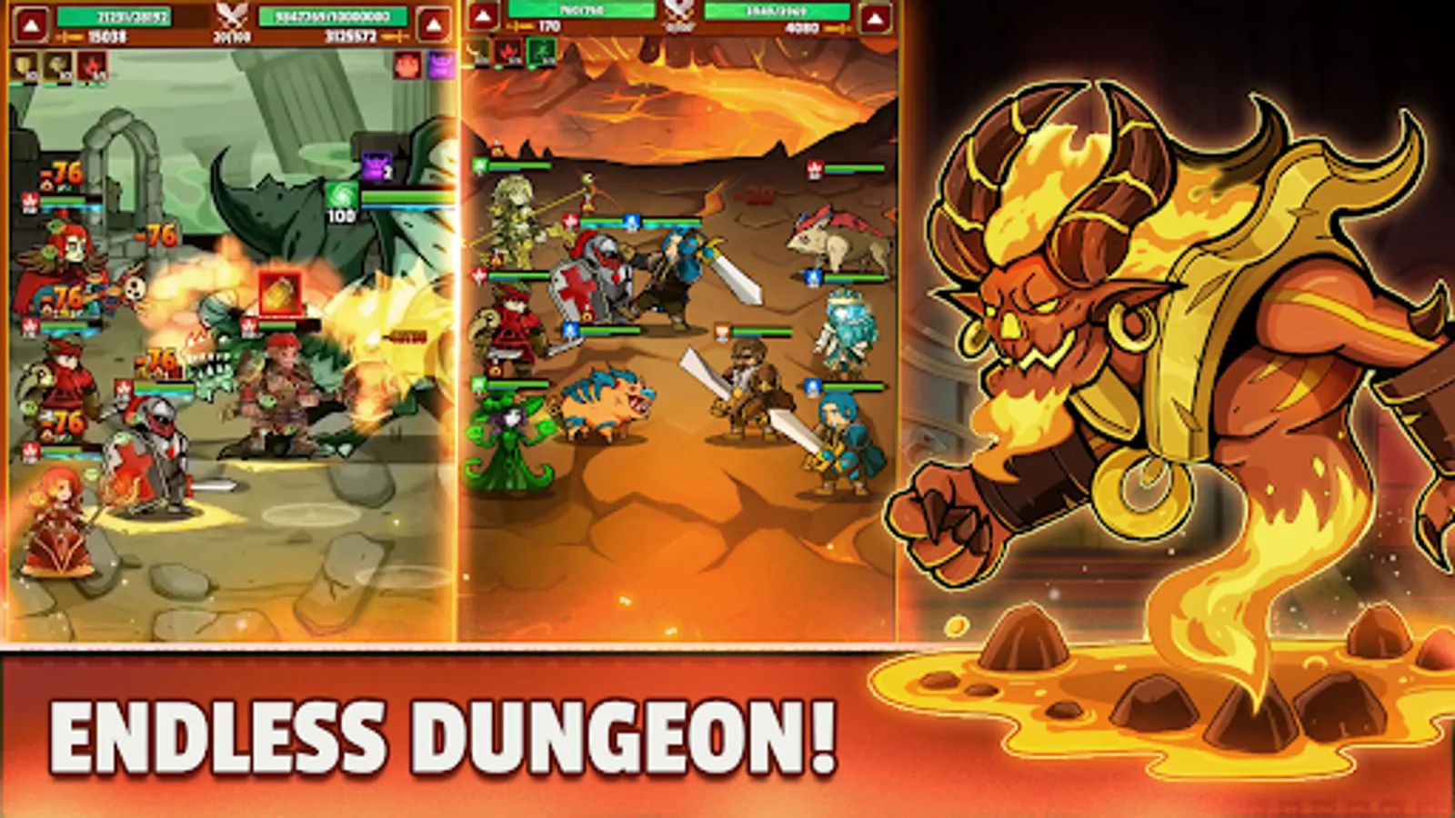 You need to recruit heroes with different skills to form a team and raiders the Dungeon, Also, strengthen your team by upgrade the hero!