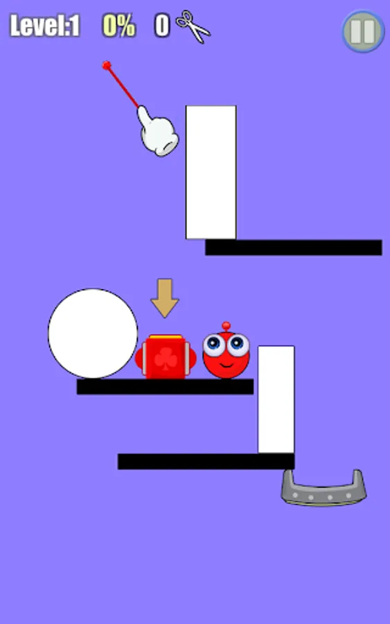 Dropping the red ball-shaped alien into the spaceship below is necessary to pass the level. If the pieces that are cut and fall into the gap are more than 51%, you will pass the level. This game is not a rushed game, you can clear everything with a single hack or two hacks on many levels.