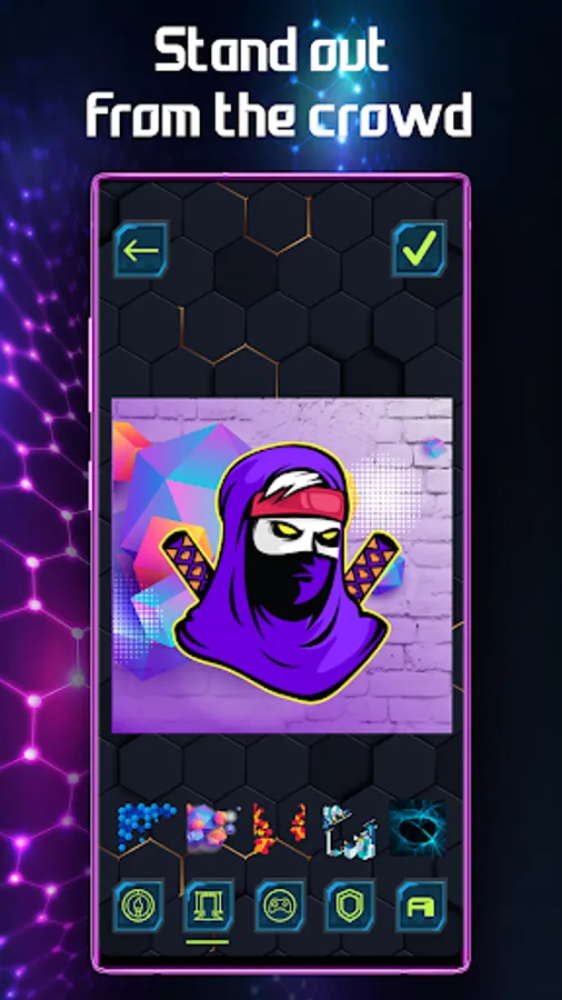 Are you after a "gaming logo maker free" of charge? Trying to have your emblem stand out? You like using logos esports maker apps? Then you're in the right place! Our emblem creator free offers photo stickers with frame borders, but also many more options you can use for gaming logo design. Here you will find numerous colorful sticker designs and cool frames! Add photos from your gallery and create a personalized profile picture. Our esport avatar profile picture maker for gamers is an ideal app for private purposes, but also for some social media marketing! Amazing stickers are waiting for you in this incredible app. It might seem that this "gamer avatar creator" is very similar to all other photo editing apps. However, it differs in that it enables you to design your own gamer esports banner maker either for playing games or other needs! Have fun with gamer logo app and unleash your creativity!