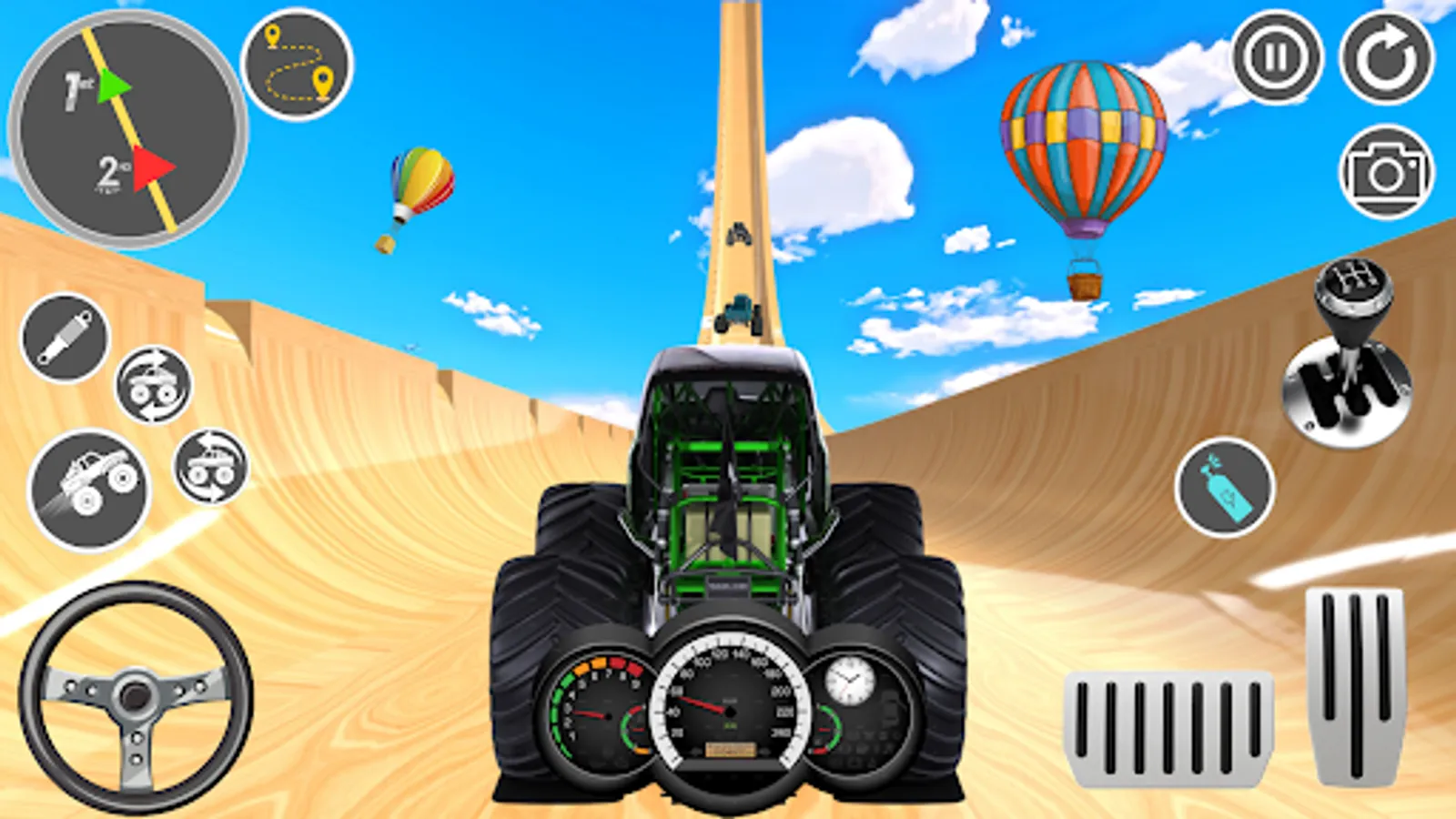 In this Monster Truck Mega Ramp Game 3D, ramps are designed to be challenging, with steep inclines and declines, sharp turns, and obstacles like barriers and loops. Players must use their driving skills to navigate their trucks through the course while performing stunts to earn points.