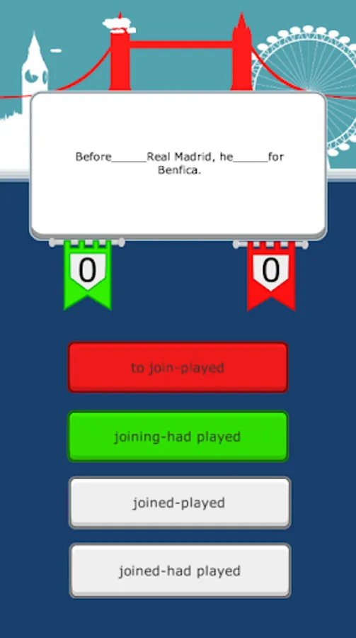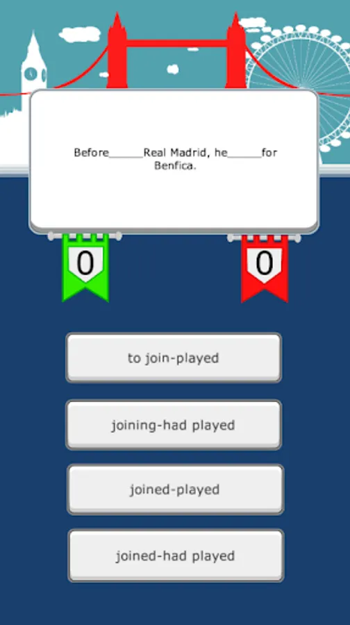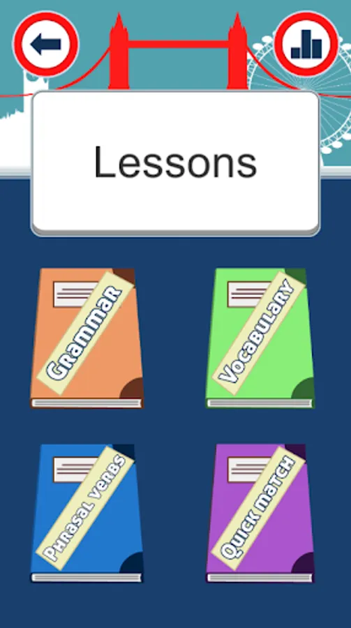 Various ways, including Grammar, Vocabulary, Phrasal Verbs and random. Compare stats with your friends and see who is the best.