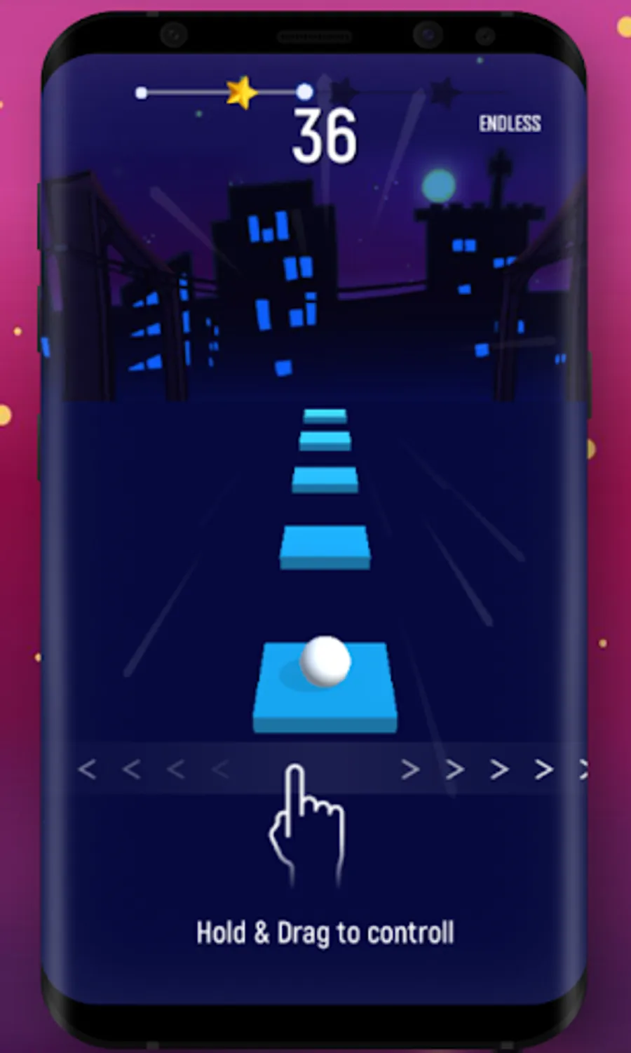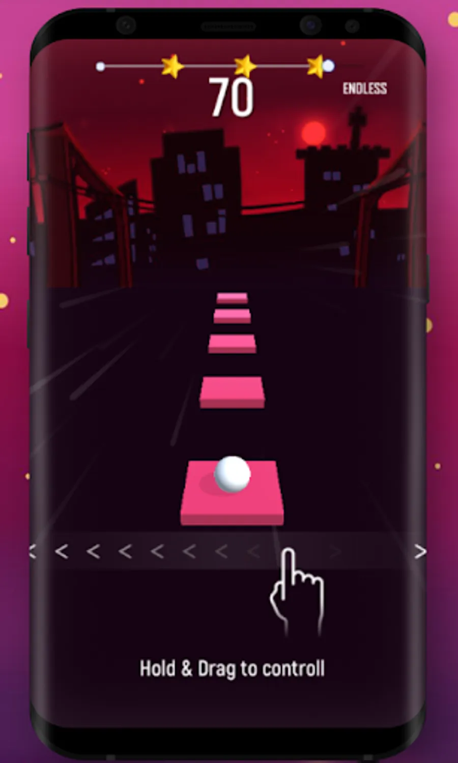 2- touch, hold and drag the ball to make it jump on the tiles.
