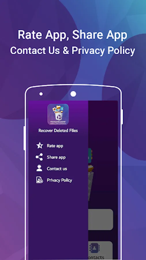 Your phone have backup files of your recently deleted photos, we basically restore your that backup files which you cant access easily or not possible for you. To recover your that files you have to download our app. Now how will you make your media files recovered and restore deleted media. Just click on the option you want to cover photos, videos, contacts. Then select deleted photos, videos and contacts from preview. Then tap on ‘Recover’ tab and all selected recovered media files will be transferred to local storage.