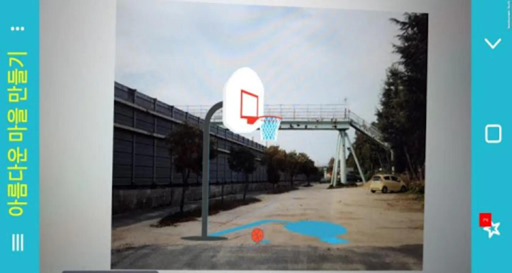 It shows the beautiful improvement of the dangerous place and unsightly facilities on the Hwabong Dream Mart with AR.